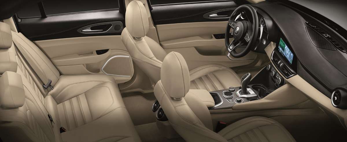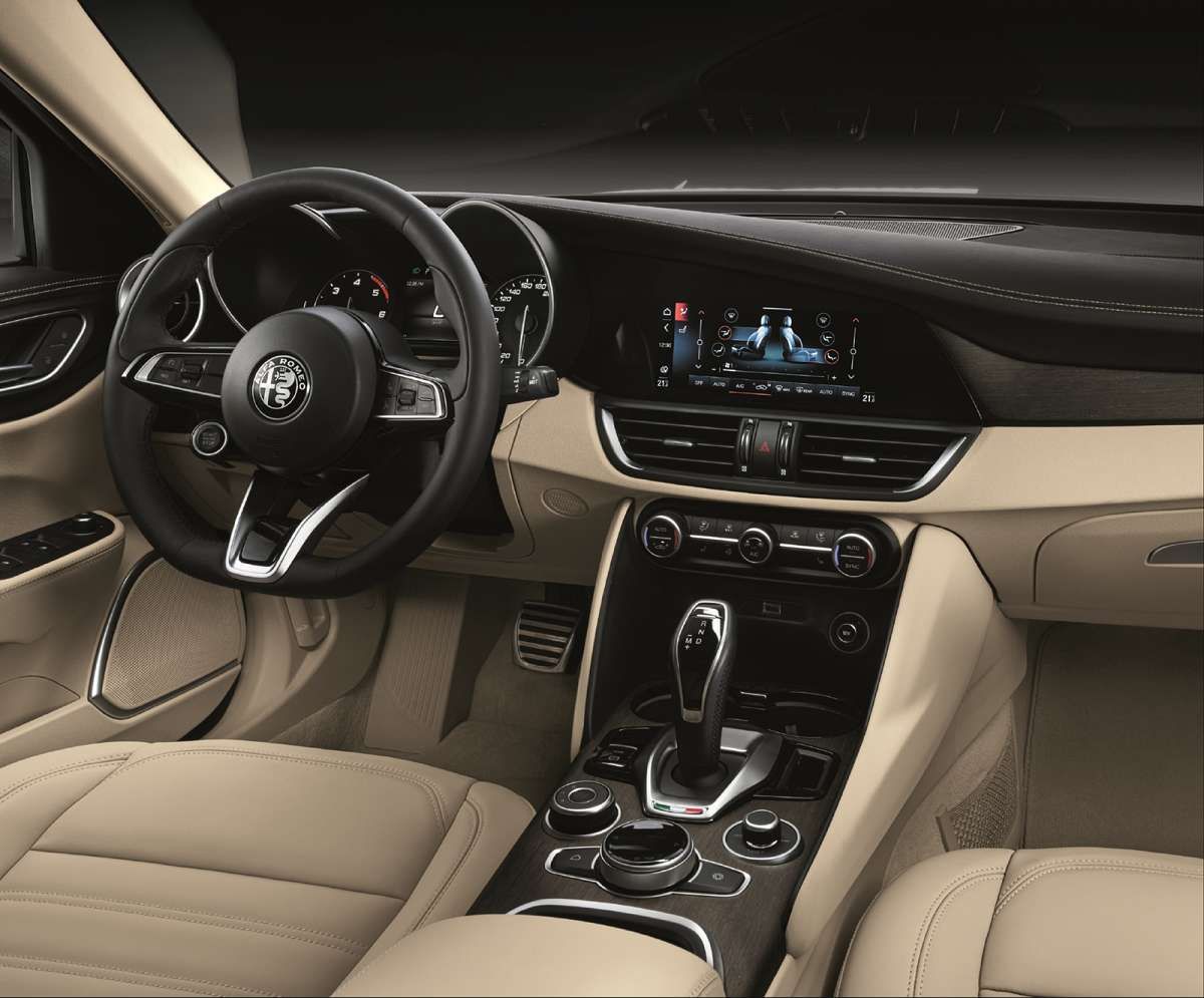 Każdy poziom wyposażenia ma swój wyrazisty charakter: w przypadku podstawowej wersji Giulii występują 16-calowe felgi aluminiowe oraz tapicerka z tkaniny, w wersji Super tapicerka ma odnowiony i nowy wzór, i jest oferowana wraz z 17-calowymi obręczami kół ze stopów lekkich, co jest również cechą wyróżniającą wersje Business. Wersja „Ti" oferuje z kolei 18-calowe koła, drewniane elementy wykończenia wnętrza oraz skórzane fotele o wysokiej jakości, by spełnić oczekiwania osób poszukujących luksusu i elegancji. Atrakcyjna i sportowa wersja wyposażenia Sprint oferuje tapicerkę skórzaną w połączeniu z tkaniną, 18-calowe koła i aluminiowe elementy wykończenia wnętrza, natomiast wersja Veloce wyróżnia się swoimi wyjątkowymi sportowymi fotelami ze skóry. W wersji Veloce Ti nie ma mowy o kompromisach: znajdziemy tu19-calowe koła, wykończenie wnętrza elementami z włókna węglowego, karbowane elementy zewnętrzne (przedni grill, lusterka) oraz siedzenia pokryte Alcantarą.