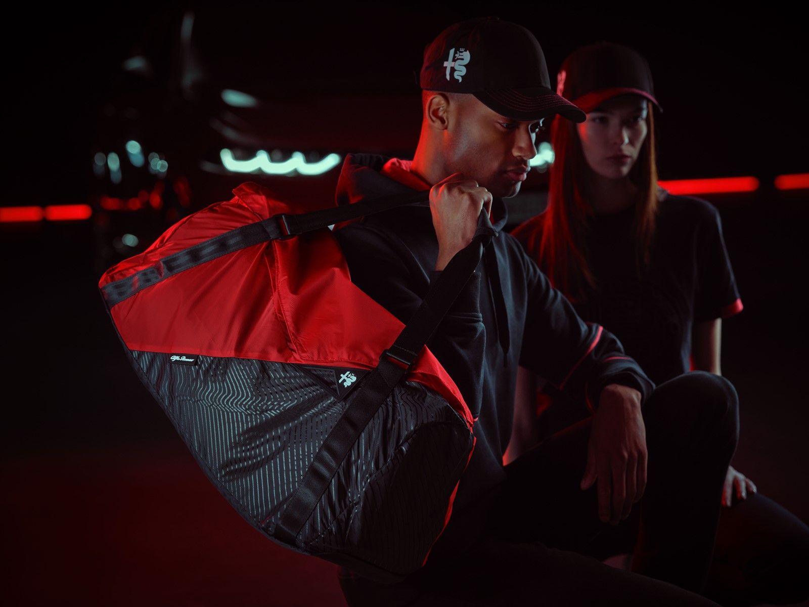 Kolekcja o sportowym charakterze, którą można wygodnie nosić w mieście. Wyjątkowy styl płynnie łączy się z technologią, oferując odzież i akcesoria o minimalistycznym i magnetycznym wyglądzie, inspirowanym innowacyjną i zrównoważoną estetyką miejską. Kolekcja wyróżnia się szerokim zastosowaniem lekkich, wysokowydajnych materiałów, w których dominuje czerń, rozjaśniona czerwonymi detalami stanowiącymi sygnaturę świetlną marki Alfa Romeo. Proste linie i czyste formy, w których każdy element dąży do harmonii między osiągami a emocjonalną elegancją, wnosząc coś z emocji sportów motorowych do codziennego życia. Odzież z kolekcji „Urban Red Line” obejmuje trencz Urban, elegancki i wyrafinowany element odzieży wierzchniej, idealny do miasta, wykonany z eleganckiej tkaniny i dostępny w kolorze czarnym z czerwoną podszewką i wywijanymi mankietami. Suwak do zamka jest spersonalizowany, a na lewym ramieniu umieszczono logo Alfa Romeo z czarnej gumy. Dla klientów poszukujących bardziej swobodnego i sportowego stylu przygotowano bluzę Alfa Romeo Urban wykonaną z czarnej mieszanki bawełny, ozdobioną czerwonymi detalami na mankietach i odblaskowym logo Alfa Romeo na ramieniu. Kolekcję uzupełnia czapka z daszkiem wykonana z technicznej, wytrzymałej tkaniny w kolorze czarnym z czerwonymi paskami na daszku w kontrastowym kolorze i odblaskowym logo Alfa Romeo z przodu; brelok do kluczy Urban Alfa Romeo, praktyczny i trwały dodatek, który pozwala wyrazić swój unikalny styl oraz parasol Urban Alfa Romeo z ramą i żebrami wykonanymi z włókna szklanego w kolorze czarnym.