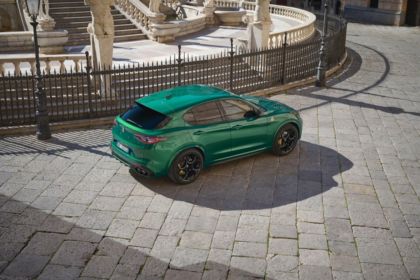 Limitowana edycja Giulii i Stelvio „Quadrifoglio 100° Anniversario” z dumą prezentuje jubileuszową wersję legendarnego logo, zinterpretowanego w nowoczesnym stylu przez Centro Stile Alfa Romeo. Projektanci Alfy Romeo zachowali jego solidność i elegancję, zmieniając tylko kolorystykę. Współczesny akcent kolorystyczny przywołuje na myśl wspaniałe samochody marki i słynne zwycięstwa sportowe, które na stałe weszły do zbiorowej wyobraźni. Turbodoładowany silnik 2.9-litrowy V6 o mocy 520 KM z mechanizmem różnicowym o ograniczonym poślizgu optymalizuje przenoszenie momentu obrotowego, zwiększając stabilność, zwinność i prędkość pokonywania zakrętów. Nowe zaciski hamulcowe w złotym kolorze, osłona chłodnicy i obudowy lusterek z widocznymi wykończeniami z włókna węglowego. W środku nowe przeszycia w złotym kolorze i jubileuszowa plakietka na desce rozdzielczej zdobią sportowe wnętrze, w którym dominuje włókno węglowe, z nowym wykończeniem 3D, zaś kierownica jest obszyta skórą oraz Alcantarą i posiada czarne przeszycia oraz wstawki z włókna węglowego.