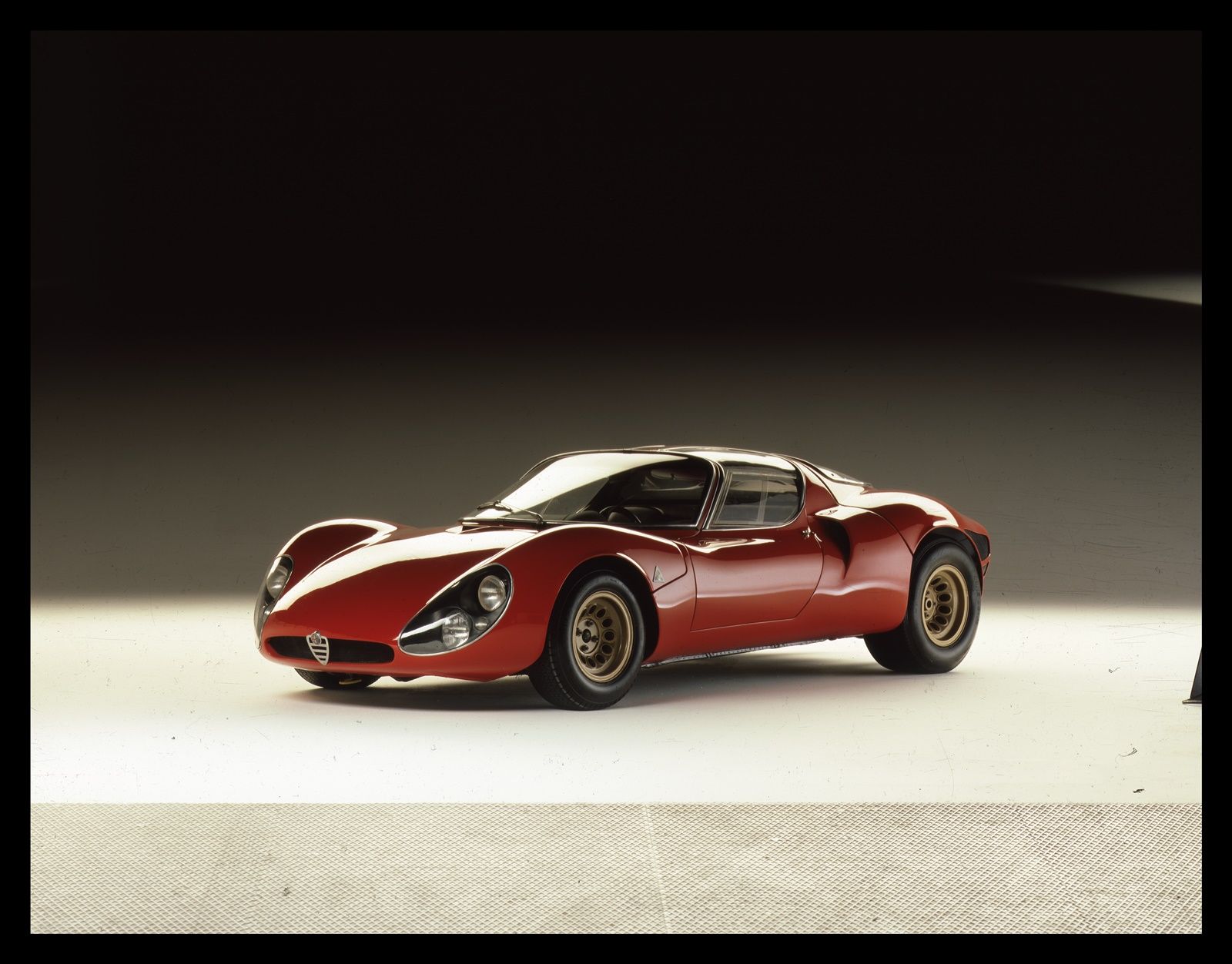 Na bazie Tipo 33/2 odnoszącego liczne zwycięstwa w wyścigach, w latach 1967-1969 stworzono limitowaną serię 18 coupé w wersji drogowej z fascynującym aluminiowym nadwoziem zaprojektowanym przez Franco Scaglione. Legendarny model, który zapisał się złotymi zgłoskami nie tylko w historii Alfy Romeo, ale także w historii motoryzacji, zarówno ze względu na swoją wyjątkowość, jak i rzeźbiarskie piękno, jest jednym z niewielu samochodów drogowych opartych na modelu wyścigowym, po którym odziedziczył doskonałe rozwiązania techniczne, które pięćdziesiąt lat później nadal są w stanie przyćmić wyrafinowane nowoczesne samochody. Jego design, kwintesencja motoryzacyjnego piękna, jest niemal nie do opisania: charakteryzuje go równowaga form, czystość linii, elegancja każdego detalu.