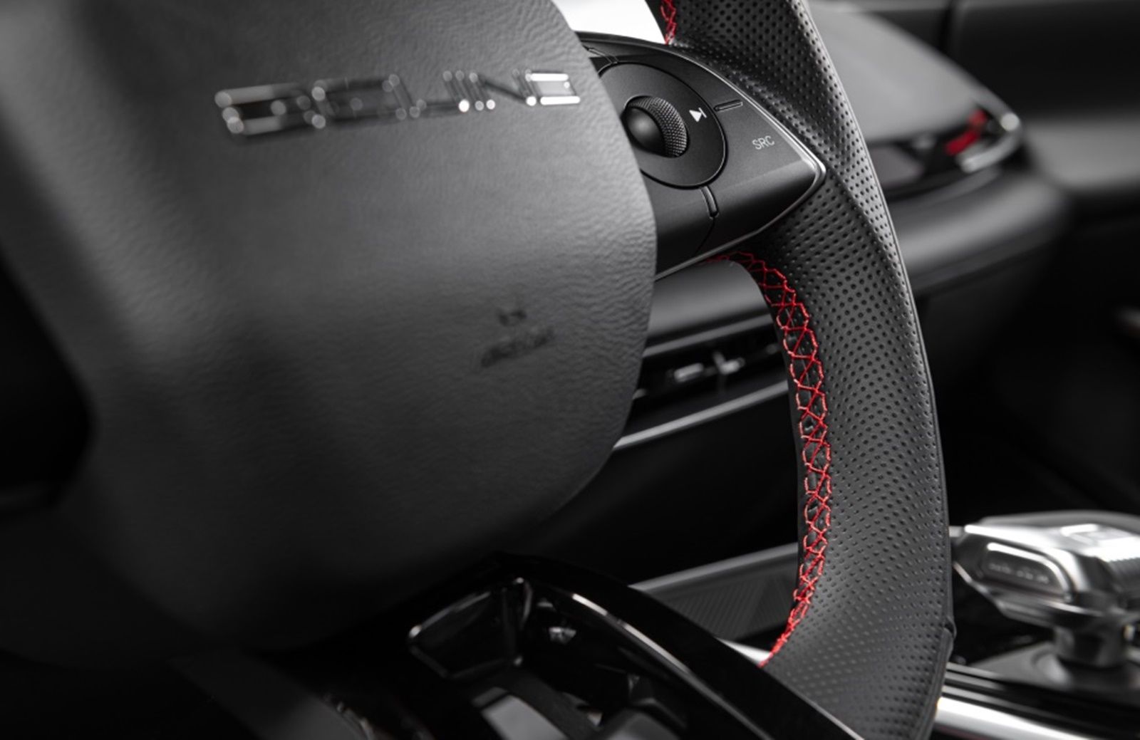 przeszyte gustowną czerwoną nicią kierownica, boczki drzwi oraz centralny