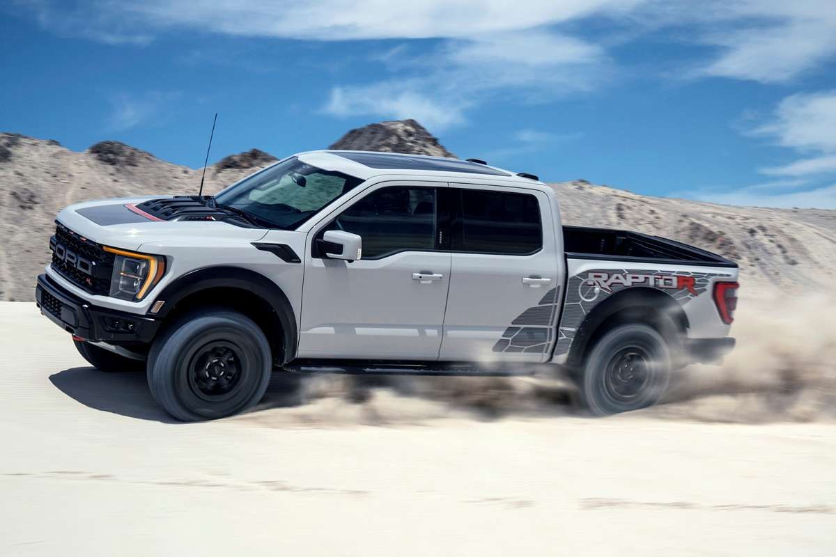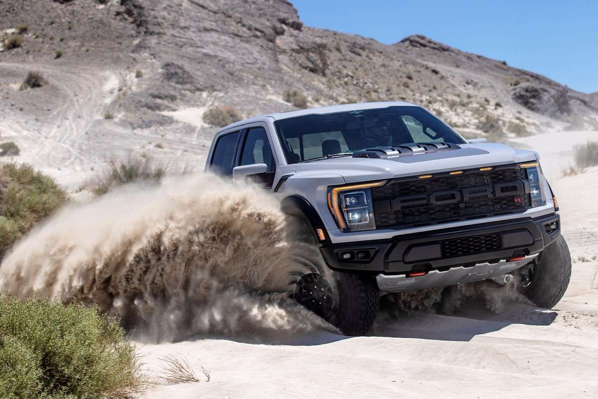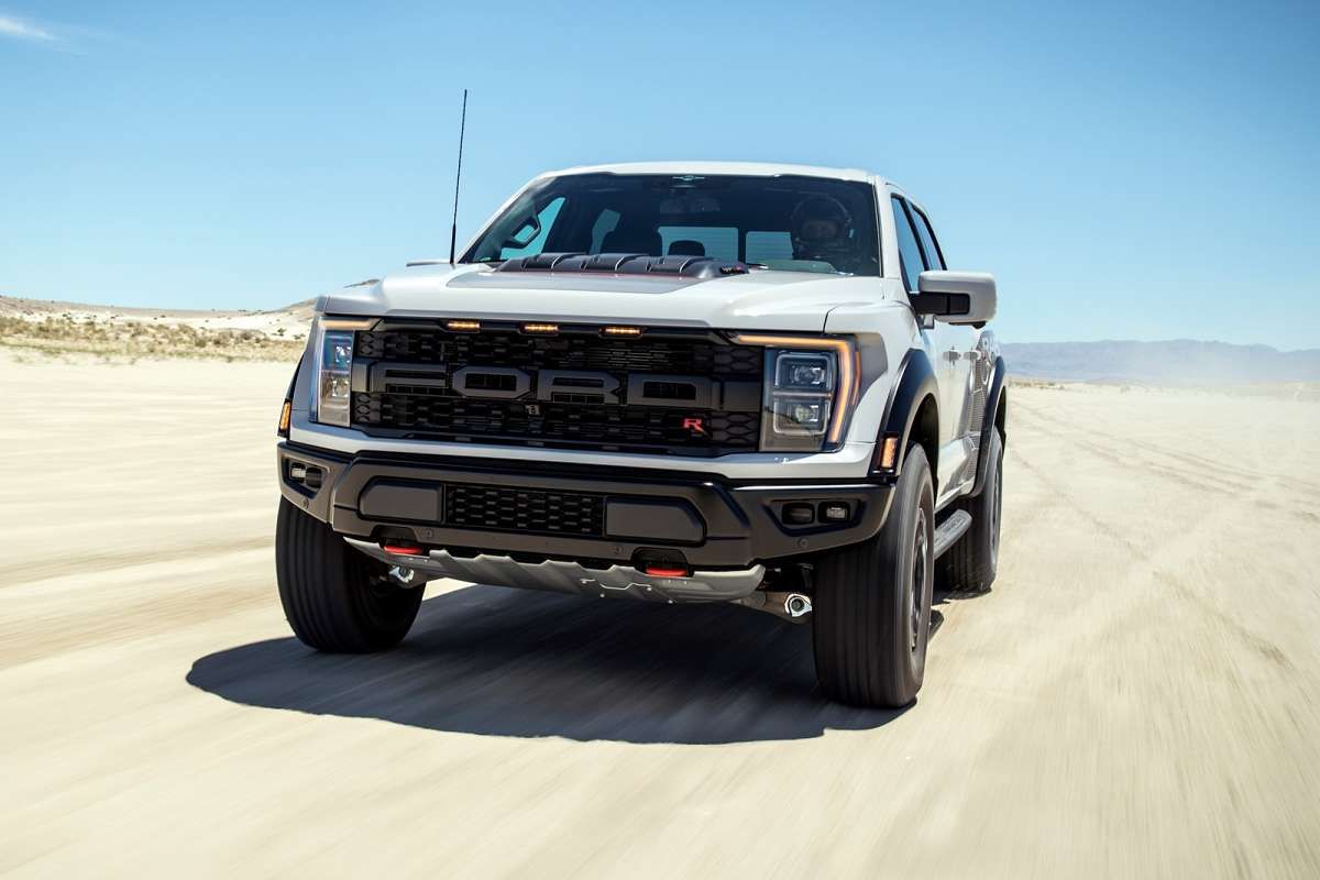 Każdy z trybów jazdy dostosowano do większej mocy doładowanego silnika V8, w tym zoptymalizowany tryb Baja, dbający o uzyskanie maksymalnych osiągów i kontroli podczas szybkiej jazdy terenowej. Zwiększona o 5% sztywność przednich sprężyn zawieszenia pomaga utrzymać komfortową jakość jazdy, a Raptor R może pochwalić się wiodącym w klasie prześwitem wynoszącym 333 mm i standardowymi, wyjątkowymi w jego klasie, instalowanymi seryjnie 37-calowymi oponami, które usprawniają pokonywanie przeszkód. Najmocniejszy z dotychczasowych Raptorów przenosi na wyższy poziom osiągnięcia w konstrukcji terenowych pickupów, a jego wyjątkowa stylizacja jeszcze wyraźniej podkreśla możliwości doładowanego silnika V8. Większa, bardziej agresywnie uniesiona do góry centralna część maski z wylotami powietrza jest o prawie 25 mm wyższa niż w bazowym Raptorze, co pomaga w odprowadzaniu gorącego powietrza z komory silnika. Będący symbolem tego modelu wlot powietrza z literami F-O-R-D, zderzaki i błotniki pomalowane na czarno podkreślają wyjątkowy charakter samochodu.