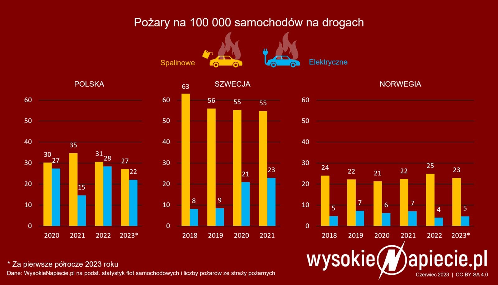 2023 r. na 100 tys. elektryków w Polsce płonęły tylko 22, podczas gdy w grupie
