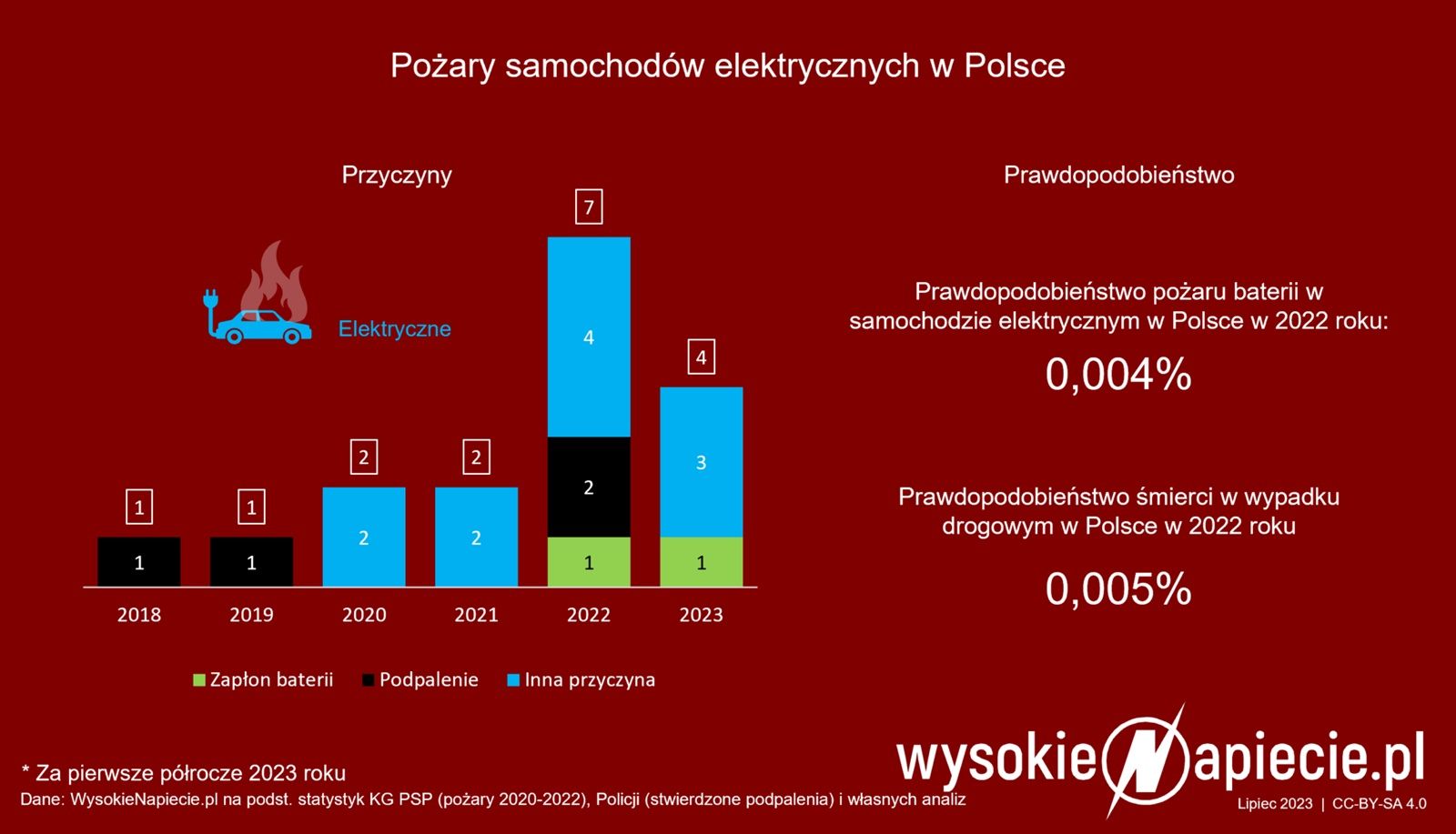 połowy 2023 r. odnotowano w Polsce łącznie 17 pożarów samochodów elektrycznych.