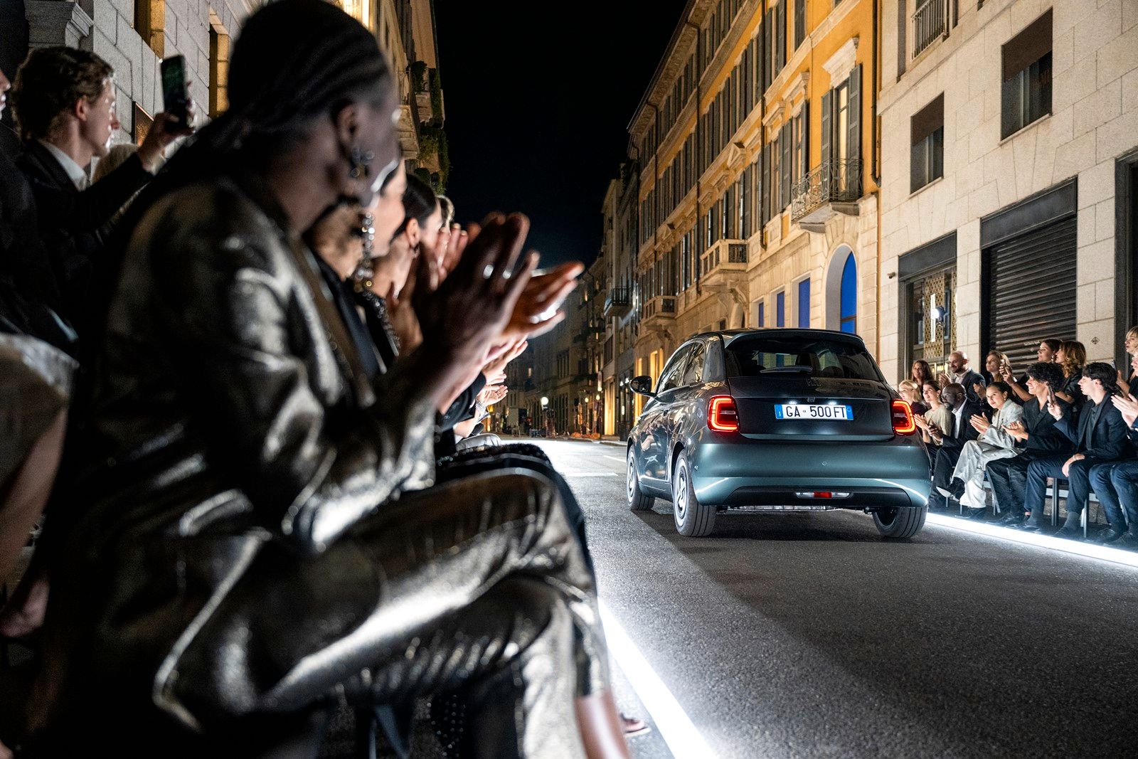 Podczas tej przejażdżki następuje zaskakujący i spektakularny moment: kultowa Via Montenapoleone przekształca się w przepiękny wybieg. Podekscytowana publiczność czeka na przyjazd Fiata 500e Giorgio Armani Collector's Edition, a kiedy samochód wreszcie się pojawia, w atmosferze elegancji wywołuje pełne emocji owacje. Całe miasto wydaje się świętować przyjazd tego niezwykłego modelu i pojawia się hasło „Don't drive it, wear it”.