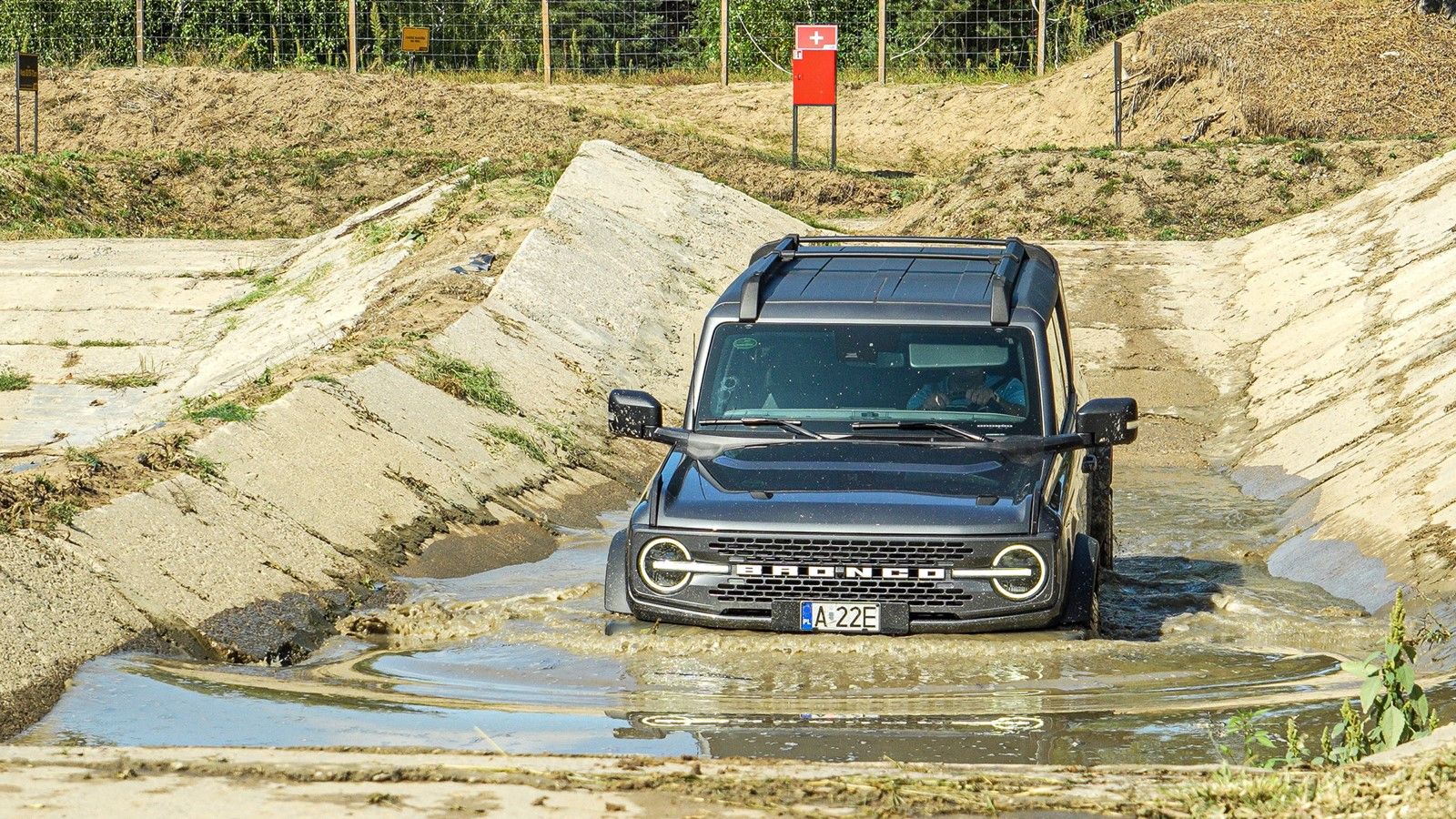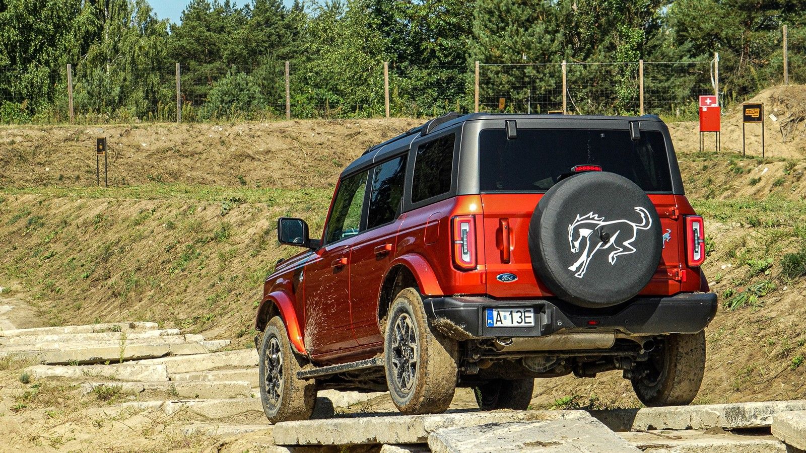 Amerykańska terenówka oferuje również zestaw systemów terenowych, które wspomagają kierowcę podczas jazdy w trudnym terenie. System kontroli zjazdu Trail Control działa podobnie jak tempomat – kierowca może wybrać prędkość z jaką będzie poruszał się samochód (do 31 km/h), a Bronco sam będzie zarządzał przepustnicą i hamulcami, aby utrzymać wybraną prędkość. Dzięki temu kierowca może skoncentrować się na kierowaniu pojazdem podczas przeprawy.