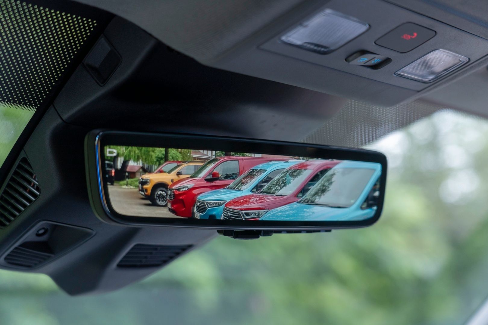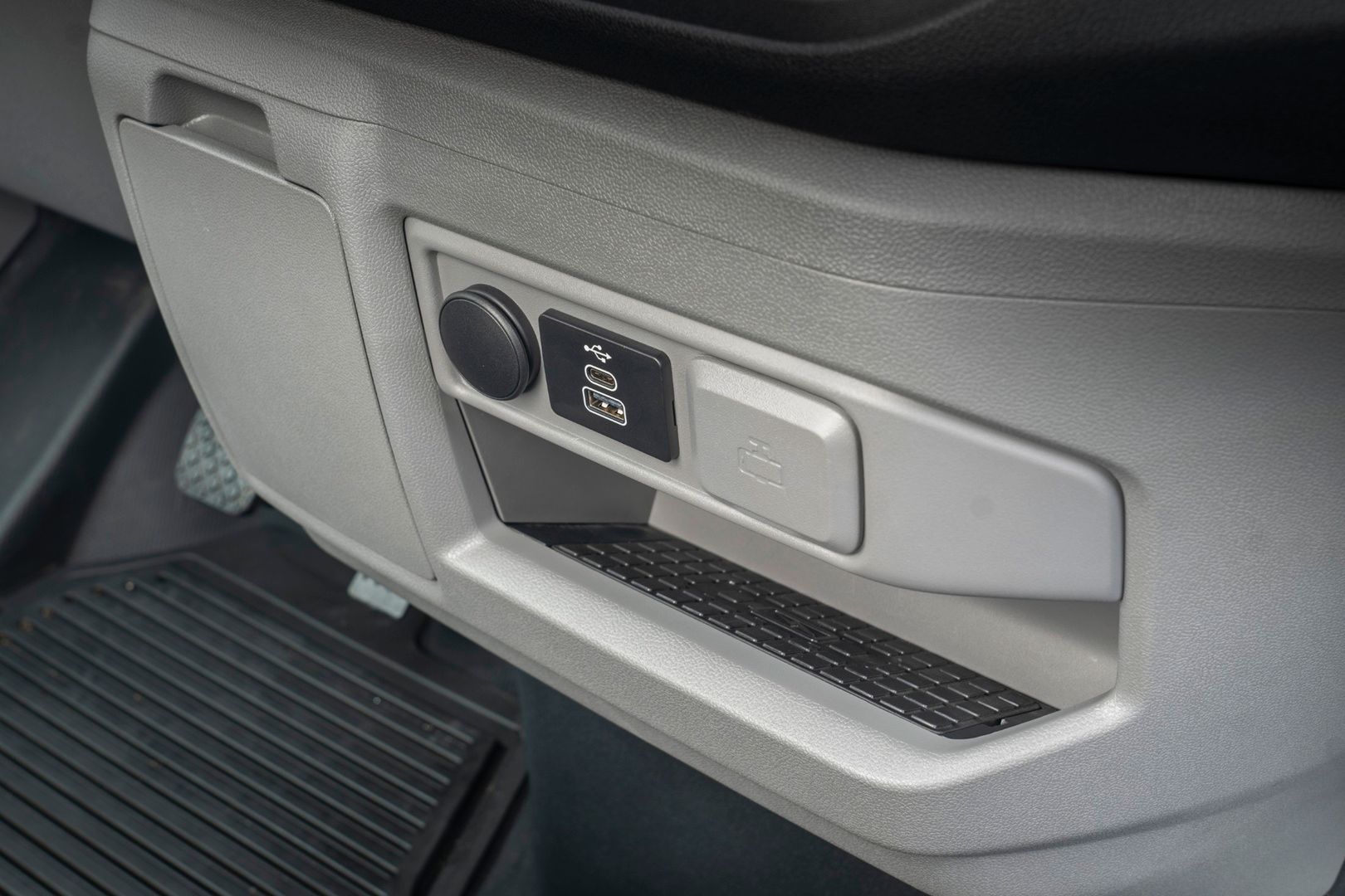 W kabinie pojazdu znajdziemy standardowy ekran dotykowy 13" z systemem SYNC 4, modemem 5G oraz wbudowaną asystentką głosową Alexa. Nowością jest przechylana kierownica z funkcją stolika roboczego (Mobile Office), system automatyzacji dostaw (Delivery Assist) oraz poprawiona ergonomia wnętrza, m.in. przez przeniesienie poduszki powietrznej pasażera do sufitu.