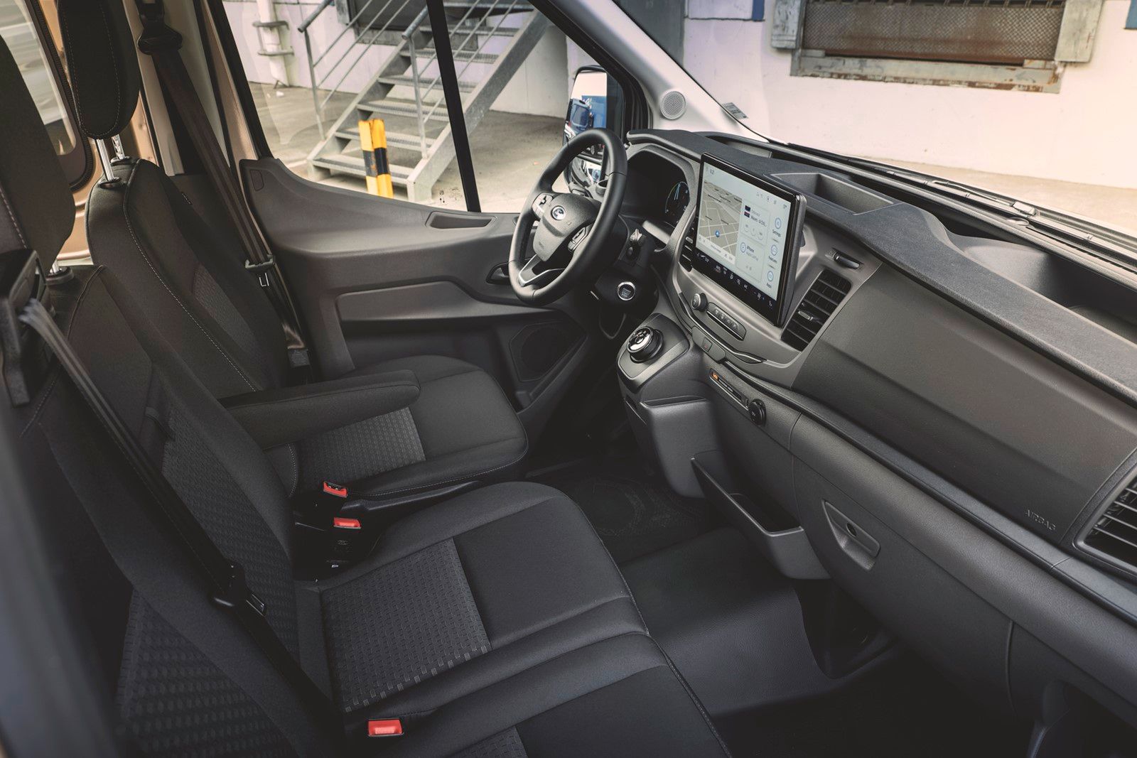 Oprócz najnowszego systemu informacyjno-rozrywkowego Forda, samochód już w standardzie jest wyposażony choćby w automatyczną klimatyzację, podgrzewane przednie fotele oraz przednią szybę QuickClear czy tempomat z ogranicznikiem. Każdy E-Transit zawiera także imponujący zestaw asystentów kierowcy, obejmujący m.in. system zapobiegania kolizjom z funkcją automatycznego hamowania.