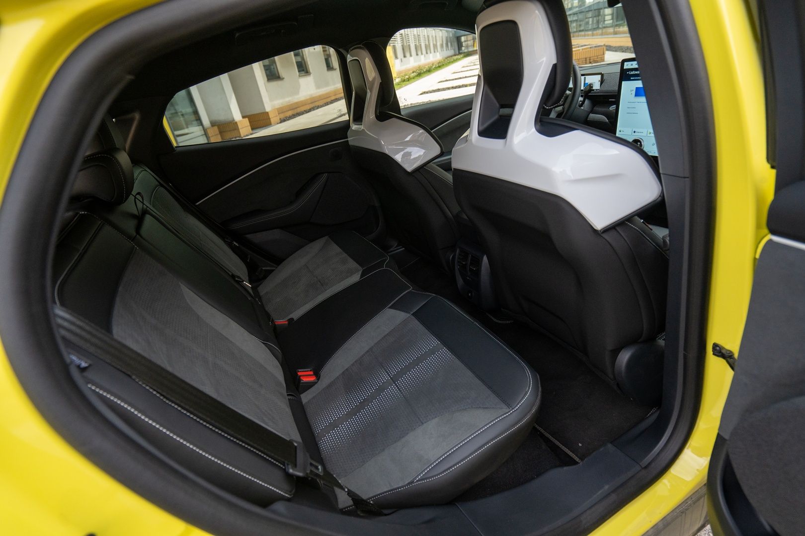 Poza tym Mustang Mach-E Rally może pochwalić się doskonałym wyposażeniem znanym z wersji GT. Obejmuje ono m.in. elektrycznie i bezdotykowo otwierane/zamykane drzwi bagażnika, układ hamulcowy Brembo z lakierowanymi zaciskami, system nagłośnienia B&O z 9 głośnikami i subwooferem czy tapicerkę Miko Suede połączoną ze skórą ekologiczną Sensico.