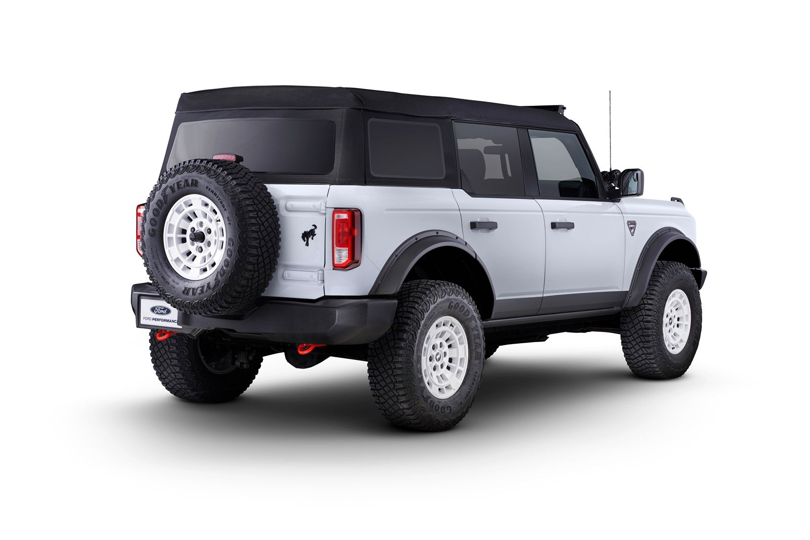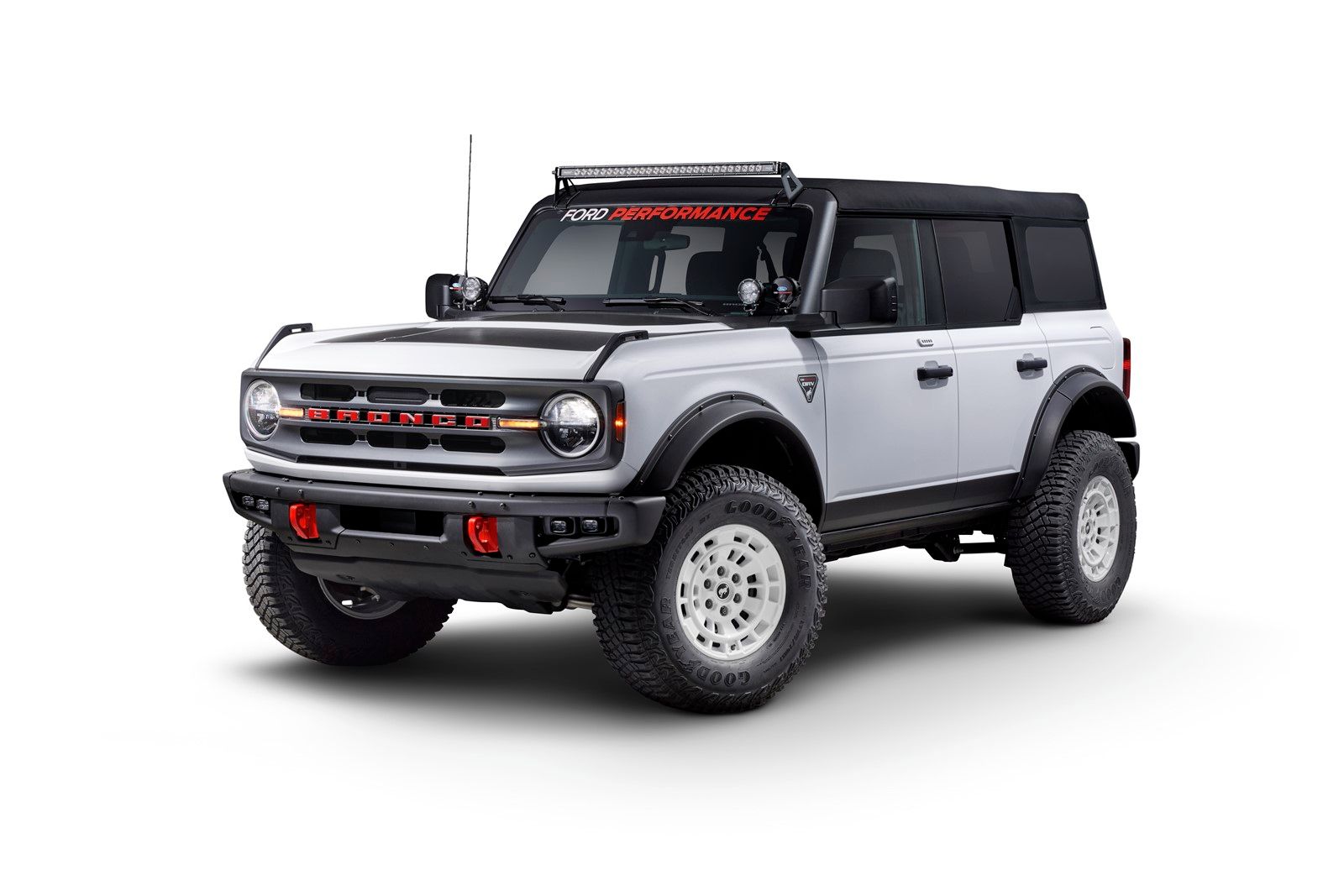 Pakiet koncepcyjny Bronco Ford Performance ORV łączy estetykę z funkcjonalnością i jest dostępny dla każdego Bronco w wersji bazowej, Big Bend, Black Diamond lub Outer Banks z 2,3-litrowym silnikiem EcoBoost i automatyczną lub manualną skrzynią biegów. Wszystkie zmiany rozpoczynają się od podniesienia zawieszenia o dwa cale dzięki zawieszeniu Bilstein. Pakiet Bronco zawiera 17-calowe białe felgi i 35-calowe opony, a także inne oprogramowanie 2,3-litrowego silnika. Opcje Ford Performance dla pakietu ORV obejmują układ wydechowy z katalizatorem Borla nie obniżający prześwitu, zaczep z mocowaniem ARB oraz kompresor pod maską.