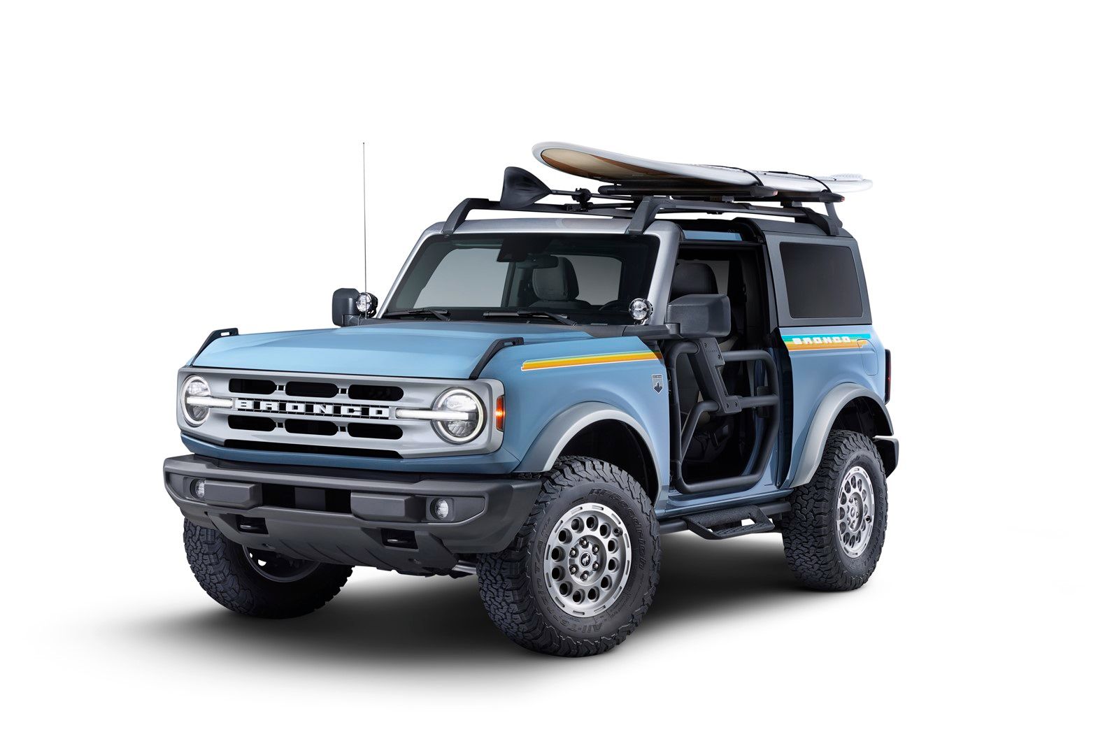 Ford Bronco czuje się na pustyni, kamienistych szlakach i błotnistych leśnych duktach jak u siebie. Obecnie może się tak czuć również na plaży. Pakiet akcesoriów tuningowych Forda dla Bronco stanowi połączenie stylistycznego tuningu oklein Blue Free Wheeling z większymi zmianami mechanicznymi, dzięki czemu klienci będą mieli wszystko, czego potrzebują do jazdy po plaży i piasku oraz przewiezienia sprzętu do surfowania. Poza podniesionym o 2 cale zawieszeniem Bilstein, które zostało dostrojone do osiągów Ford Performance, pakiet obejmuje folie i dodatki graficzne w stylu retro, otwierany dach Bimini, orurowanie drzwi oraz lakierowane nadkola i kratkę chłodnicy w wykończeniu znanym z Outer Banks. Zestaw wprowadza beztroski styl, bez którego trudno wyobrazić sobie dzień spędzony na plaży.