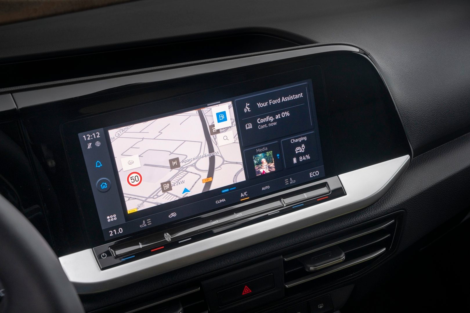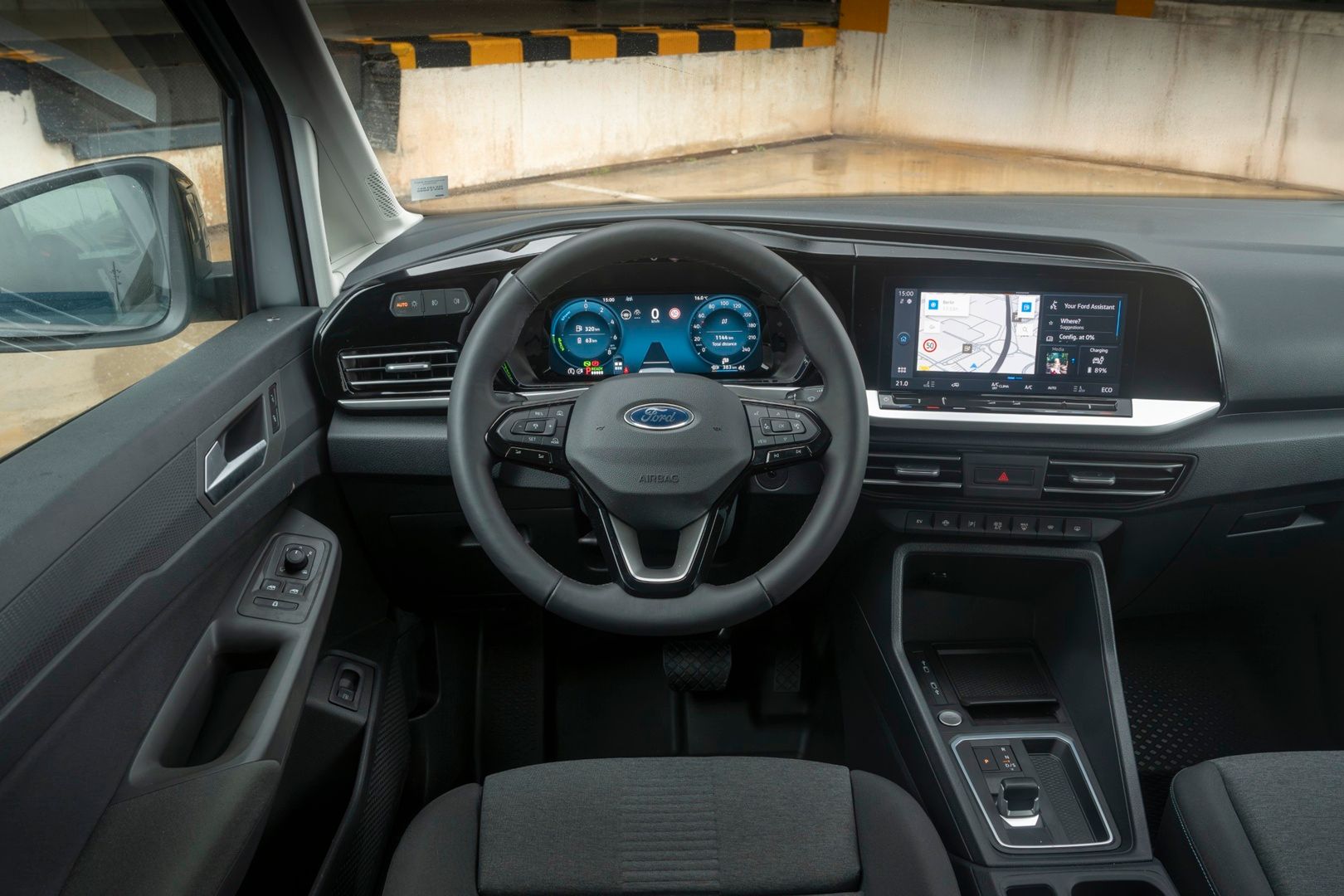 Kokpit Transita Connect PHEV jest – jak w całej gamie – standardowo wyposażony w 10‑calowy cyfrowy zestaw zegarów z konfigurowalnym wyświetlaczem głównym, otoczonym dodatkowymi informacjami o pojeździe. W połączeniu z 10-calowym kolorowym centralnym ekranem dotykowym, dysponującym w opcji skomunikowaną nawigacją, tworzy stylowy i funkcjonalny cyfrowy kokpit.