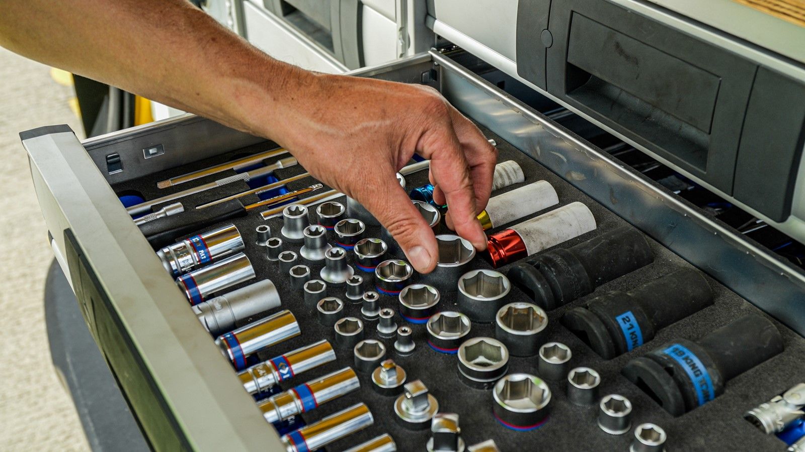 Samochody zostały wyposażone w zestaw 150 narzędzi. Wśród nich znajdują się różnego rodzaju klucze mechaniczne, wkrętarki, podnośnik nisko profilowy, przyssawka do szyb o udźwigu 40 kg, lutownica gazowa z akcesoriami, chwytak magnetyczny czy tester do akumulatora. Dostępne są także zestawy bezpieczników, konektorów, oringów czy zacisków służące do napraw, a także środki do czyszczenia oraz szczotki czy zestawy pilników.