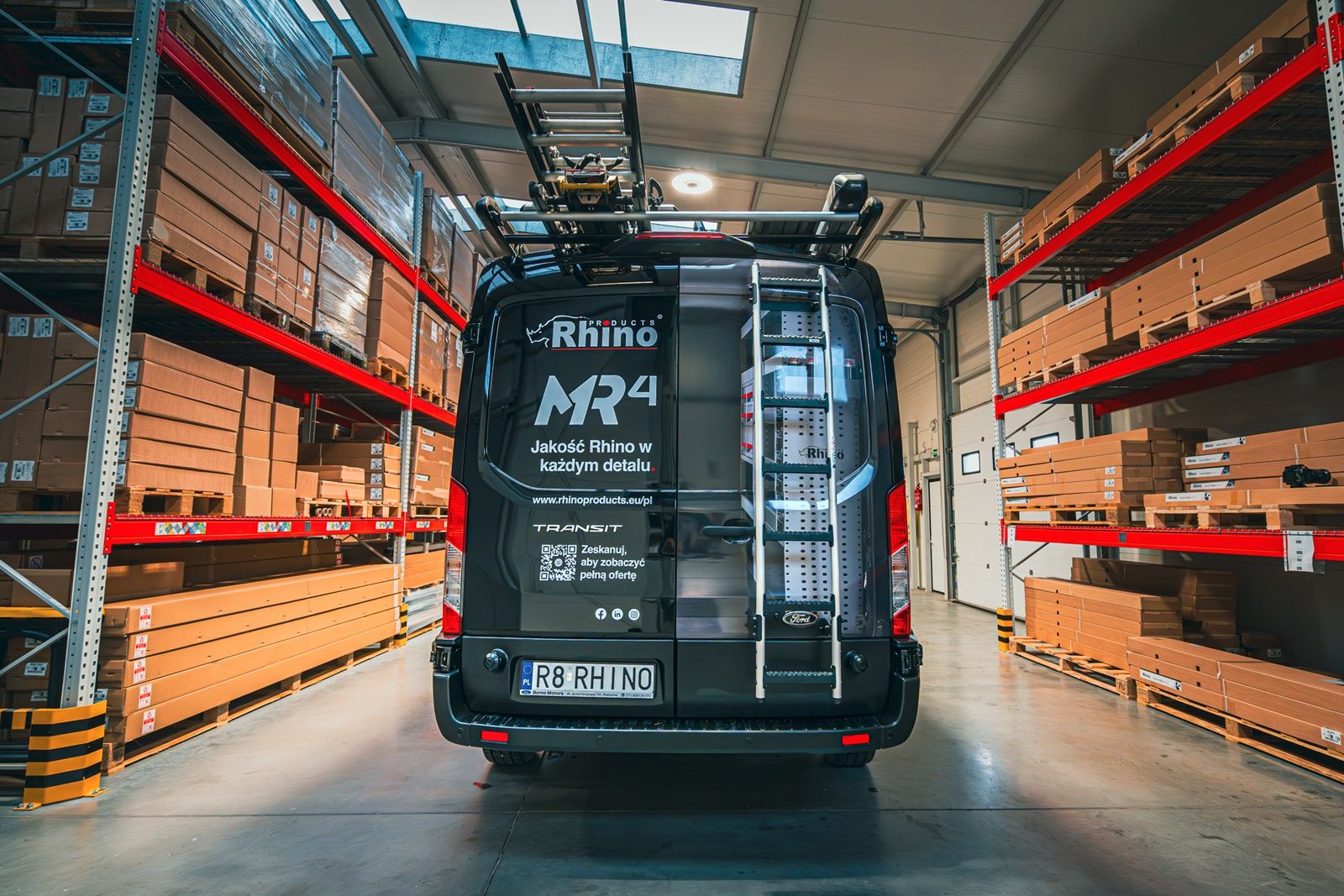 Współpracująca z Ford Polska firma Rhino oferuje zabudowy i akcesoria dedykowane gamie Transita. W skład oferty wchodzą między innymi bagażniki dachowe, zabudowy wewnętrzne, belki i systemy do transportu drabin, a także drabinki do drzwi.