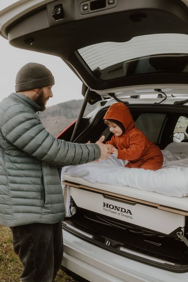 Sercem transformacji „Dream Pod” jest EGOE Nestboard 650 — kompaktowe rozwiązanie campingowe wbudowywane do wnętrza samochodu, które idealnie pasuje do 659-litrowego bagażnika CR-V. Po złożeniu tylnych foteli na płasko można szybko i łatwo rozłożyć podwójny materac, aby stworzyć przytulną przestrzeń do spania dla dwóch osób dorosłych. W podstawie EGOE znajduje się ukryta szuflada. Po jej wysunięciu naszym oczom ukazuje się kuchenka, składana umywalka oraz duży schowek na przybory kuchenne, sztućce i talerze.
