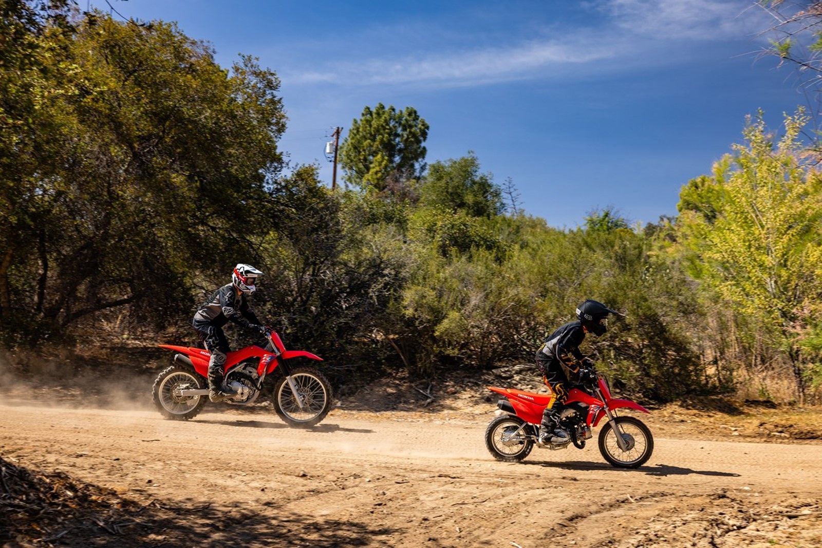 Dzięki sprawdzonej trwałości i osiągom przyjaznym dla młodych motocyklistów, CRF110F doskonale odzwierciedla dumne dziedzictwo — sięgające prawie czterdziestu lat wstecz do legendarnego XR75 – czterosuwowych, w pełni wyposażonych motocykli trialowych dla najmłodszych. W erze nowoczesności oznacza to czysty wtrysk paliwa Keihin, a także bezsprzęgłową, czterobiegową półautomatyczną przekładnię i elektryczny rozruch za pomocą przycisku.