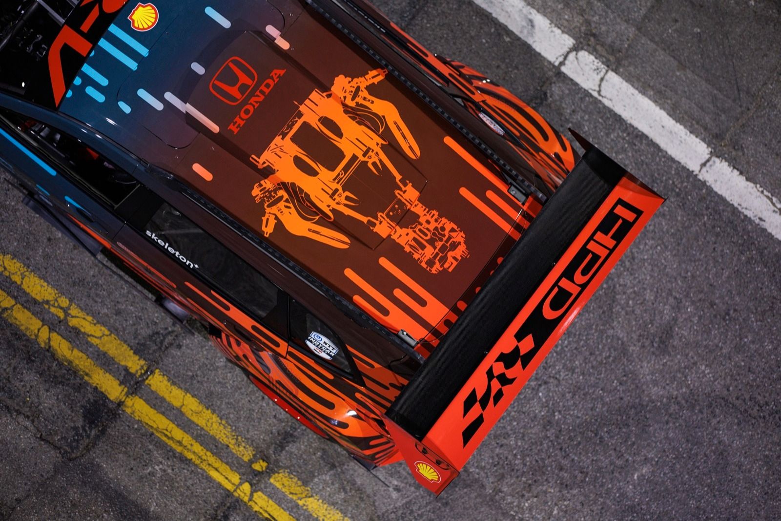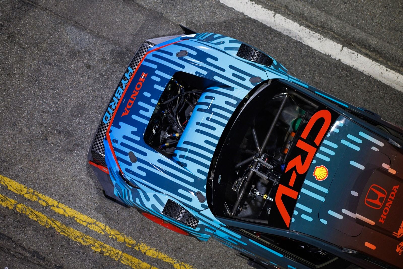 Gotową Hondę CR-V Hybrid Racer oklejono jedyną w swoim rodzaju folią ze wzorem zaprojektowanym przez Lili Melikian, starszą projektantkę nadwozia. Przyciągający wzrok projekt zawiera wiele ciekawostek i odniesień, które określa się mianem "Easter Eggs", w tym "rentgenowskie" zdjęcia układu napędowego i obwodów elektrycznych INDYCAR SERIES.