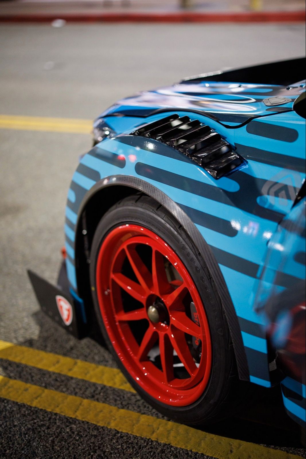 - Niestandardowa dolna część nadwozia z włókna węglowego z poszerzonymi błotnikami