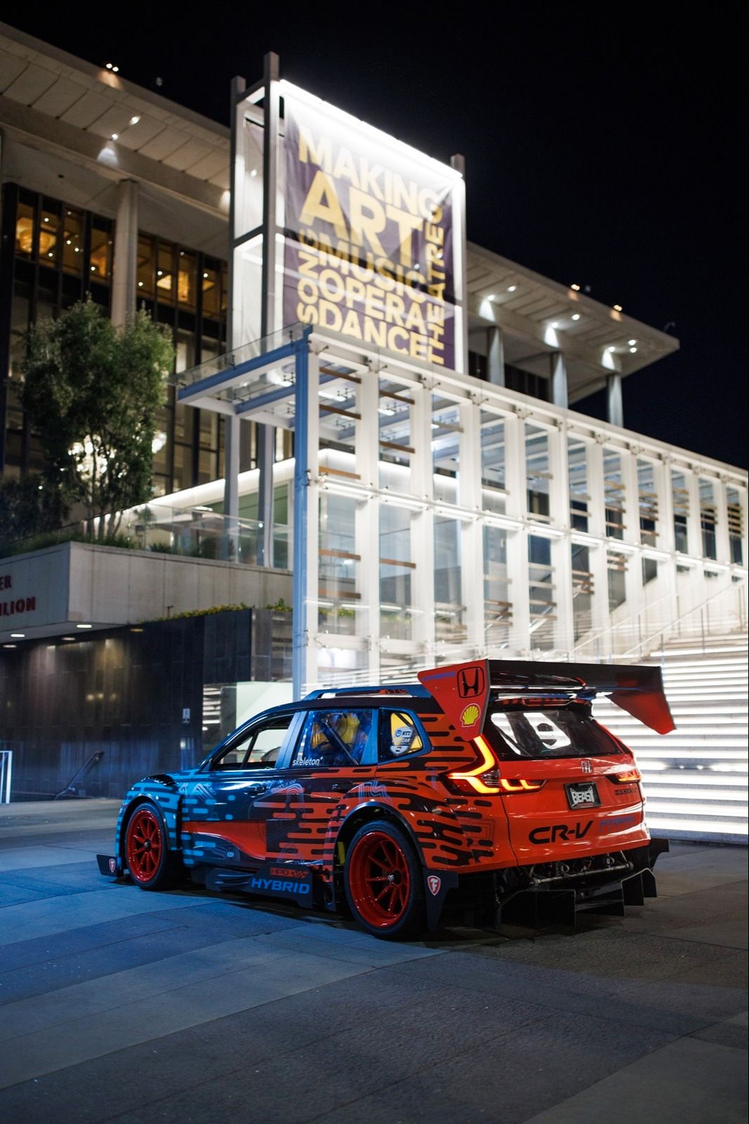 „Grafika została zainspirowana hybrydowym układem napędowym auta i przedstawia promienie, które zmieniają swój kolor od Honda Hybrid Blue do Honda Racing Red, co ma symbolizować dwoistość układu napędowego" - wyjaśniła Melikian. "Taki wzór nadaje dynamiki, a także pokazują rozrywkową stronę hasła Power of Dreams. W całym projekcie ukryliśmy również ciekawostki, takie jak zarysy torów wyścigowych sponsorowanych przez Hondę i widok z góry na silnik napędzający Hondę CR-V Hybrid Racer”.