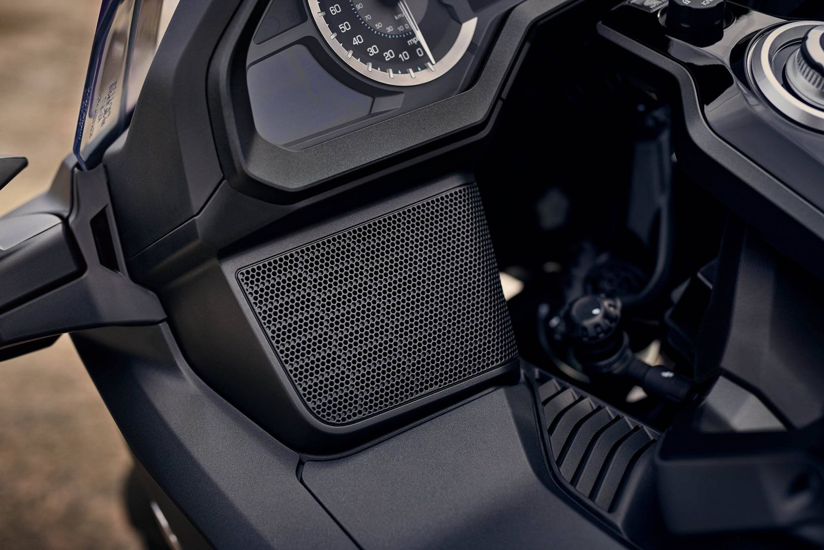 Najwyższej jakości, lekkie głośniki – o zwiększonej mocy – gwarantują znakomite brzmienie i naturalność dźwięku, teraz jeszcze bardziej wyrazistego przy dużej prędkości. Dostępny jest również przełącznik sterowania odsłuchem audio dla pasażera, by zapewnić jeszcze przyjemniejszą podróż. Przełącznik jest umieszczony w górnej części prawego kufra bocznego i steruje głośnością, wyborem źródła oraz umożliwia „przewijanie” do przodu odsłuchiwanej muzyki.