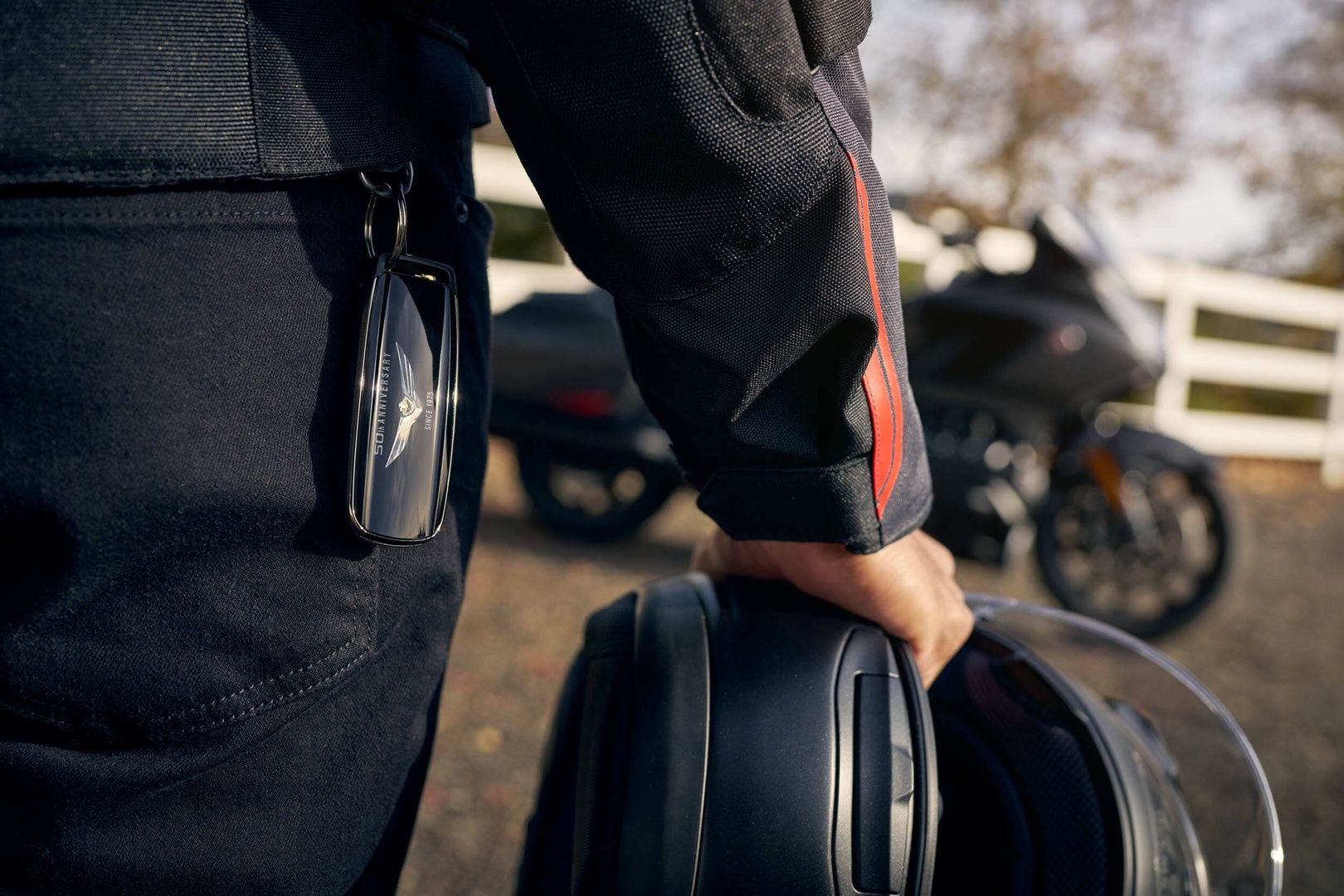 Honorowe miejsce na konsoli środkowej i na inteligentnym kluczyku otrzymał emblemat Gold Winga, a modele powstałe z okazji 50. rocznicy otrzymały specjalne detale z napisem „od 1975 r.”. Trójwymiarowy, chromowany, dwutonowy wzór emblematu łączy w sobie siłę i godność głowy lwa z majestatycznymi skrzydłami orła gotowego do ataku, z wysuniętymi szponami. Smart Key – również ozdobiony rocznicowymi detalami – aktywuje wszystkie systemy motocykla, a także zawiera kluczyk awaryjny. Zapłon i blokadę kierownicy można włączać i wyłączać, mając pilot systemu Smart Key w kieszeni.