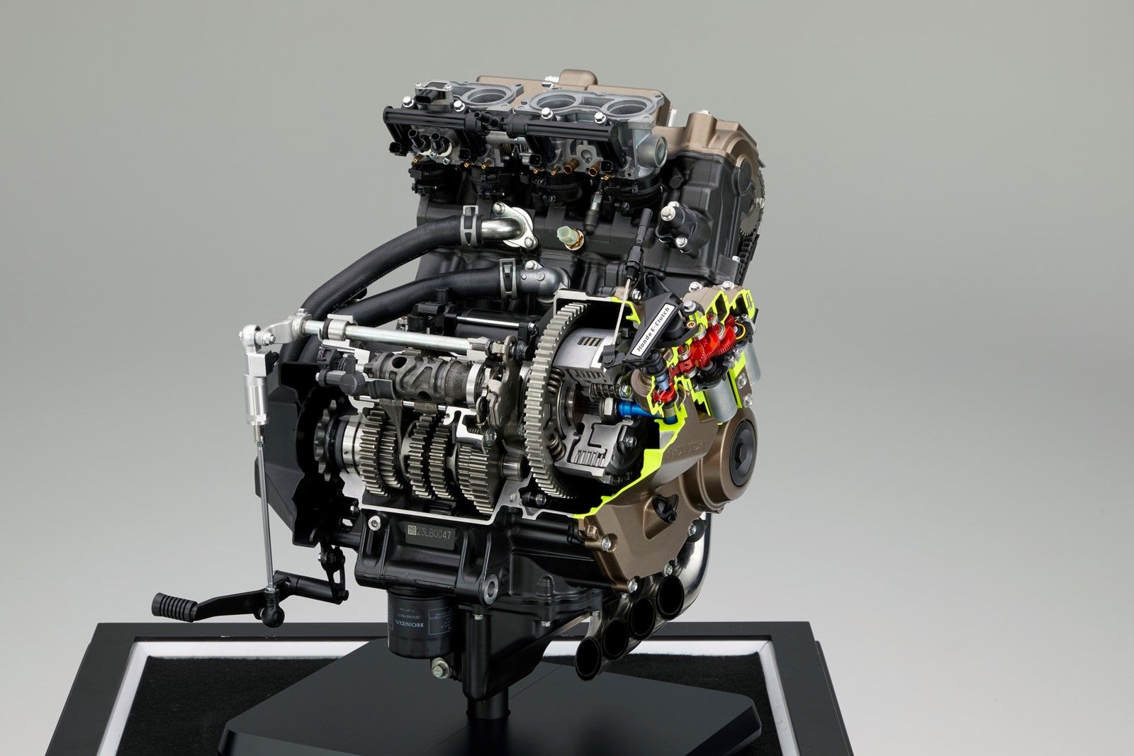 Honda E-Clutch zarządza załączaniem i rozłączaniem sprzęgła na podstawie odczytanych parametrów – prędkości motocykla, kąta otwarcia przepustnicy, prędkości obrotowej silnika, nacisku na pedał zmiany biegów, kąta przełożenia silnika redukcyjnego sprzęgła, prędkości obrotowej wałka zdawczego i przełożenia skrzyni biegów. Sterowanie sprzęgłem odbywa się za pomocą zespołu siłownika z dwoma silnikami umieszczonymi wewnątrz prawej pokrywy silnika. Gdy sprzęgło jest załączane lub rozłączane, kontrolowany jest również zapłon i wtrysk paliwa, co skutkuje płynną, wolną od szarpnięć zmianą przełożeń w każdej sytuacji.