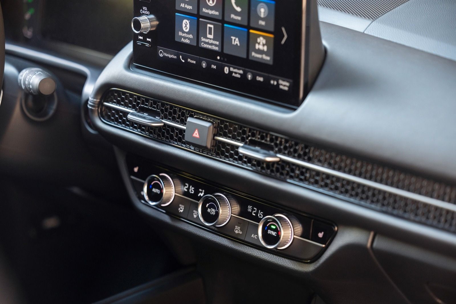 Dzielona konsola środkowa jest unikalna dla modelu ZR-V i została zaprojektowana tak, aby zgrabnie wkomponować przyciski zmiany biegów i przycisk hamulca postojowego w wygodnym dla kierowcy miejscu. Ponadto przyciski zmiany biegów typu shift-by-wire zostały przeprojektowane pod kątem nadania im indywidualnego kształtu i ergonomii korzystania z każdego z osobna, dzięki czemu obsługa jest intuicyjna i nie wymaga odrywania wzroku od drogi.Trójramienna kierownica z gładkim, skórzanym wykończeniem i błyszczącymi, czarnymi akcentami zapewnia kierowcy poczucie klasy premium. Dodatkową wygodę zapewniają fizyczne przyciski do sterowania dźwiękiem, obsługi telefonu i konfiguracji ustawień po lewej stronie kierownicy oraz tempomatu i wyboru informacji o pojeździe po prawej. Wyższe wersje wyposażenia zyskują podgrzewaną kierownicę, sterowaną za pomocą dyskretnie umiejscowionego przycisku w jej dolnej części. Z kolei oryginalne, metalowe manetki montowane są we wszystkich wersjach modelu i zapewniają pełną kontrolę nad stopniem hamowania regeneracyjnego e:HEV.