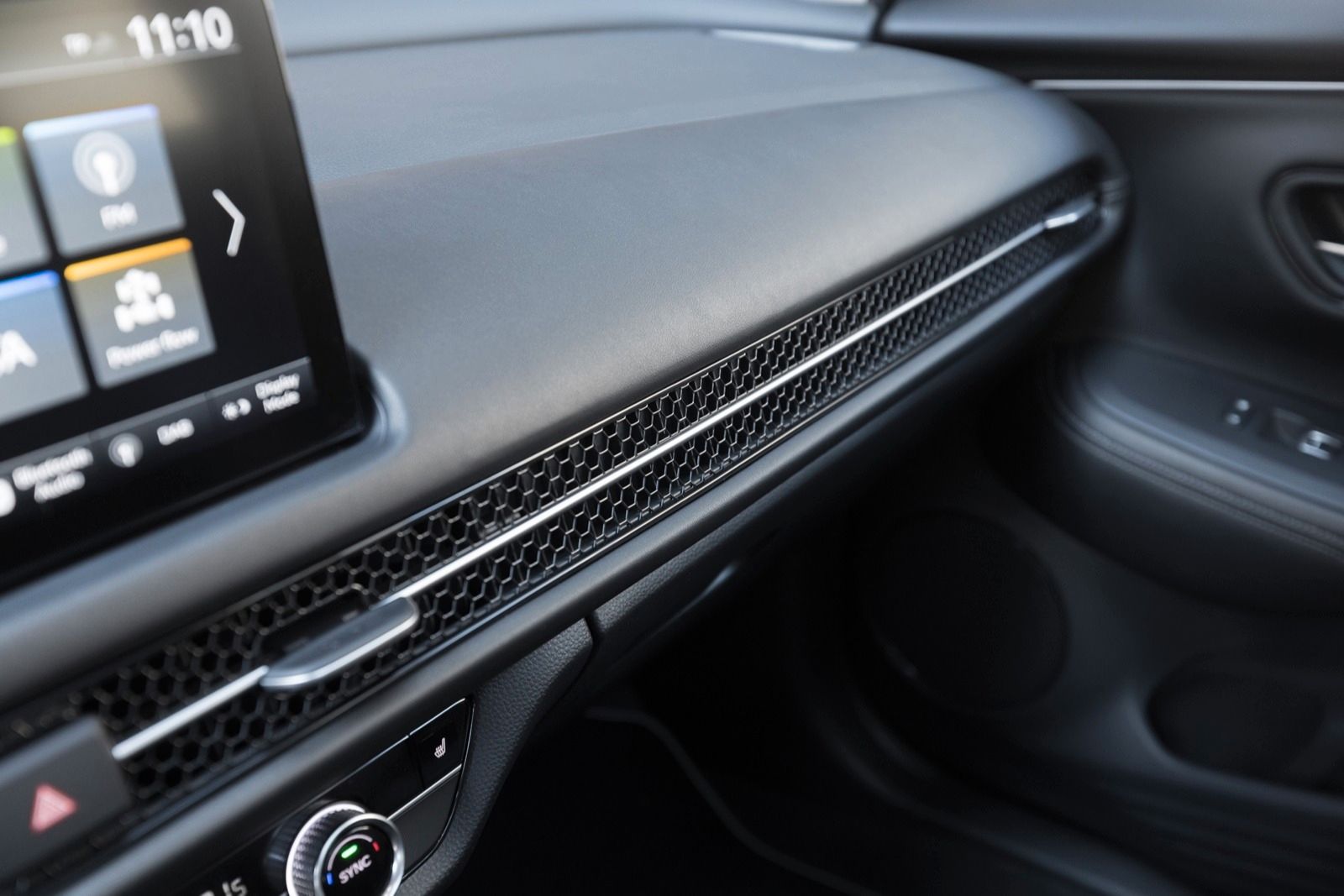 Kierowca i pasażerowie odnajdą w nowej Hondzie ZR-V poczucie luksusu, a to wszystko dzięki wyrafinowanej stylistyce wnętrza, łączącej wysokiej jakości, przyjemne w dotyku materiały, praktyczność, funkcjonalność i najwyższe w tej klasie poczucie komfortu. Projektanci Hondy za priorytet uznali wykorzystanie w całym wnętrzu miękkich materiałów wysokiej jakości, w tym szczególne dopracowanie tych miejsc, z którymi kierowca ma częsty kontakt. Duży, dziewięciocalowy ekran dotykowy umieszczono pośrodku górnego panelu deski rozdzielczej, co dodatkowo wzmacnia poczucie dużej szerokości wnętrza. Kokpit, który otula kierowcę wraz z dużą konsolą środkową, miękkie poduszki chroniące kolana oraz podłokietniki zapewniają pasażerom wyjątkowy komfort jazdy, typowy dla klasy premium. Wielokrotne modelowanie cyfrowe, realizowane na etapie projektowania i prac rozwojowych nad wnętrzem zaowocowało stworzeniem unikalnej, prążkowanej faktury dla wszystkich okładzin drzwi i wewnętrza bagażnika. To ujednolicone wykończenie gwarantuje trwałość oraz skutecznie ogranicza powstawanie otarć i zadrapań w obszarach najbardziej narażonych na uszkodzenia w pojeździe.
