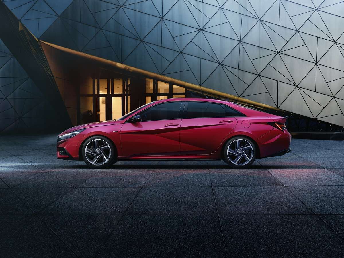 Niskie i szerokie nadwozie Elantry N Line inspirowane motywem Parametrycznej Dynamiki nadaje jej wyrafinowanego i sportowego charakteru. Kaskadowy grill Elantry nabiera bardziej agresywnego wyglądu dzięki znaczkowi N Line i złożonemu geometrycznemu wzorowi. Wloty powietrza w kształcie strzał w dolnej części przodu o sportowej stylistyce wspomagają aerodynamikę i chłodzenie silnika. Listwy progowe wersji N Line i 18-calowe felgi aluminiowe podkreślają niską i szeroką sylwetkę sedana. Z boku dynamiczną linię nadwozia w stylu fastbacka podkreślają przypominające strzały przetłoczenia na panelach nadwozia, które sprawiają wrażenie ruchu do przodu. Czarne błyszczące listwy na nadkolach, lusterka boczne i listwy progowe nadają całości nowoczesnego wyrafinowania.