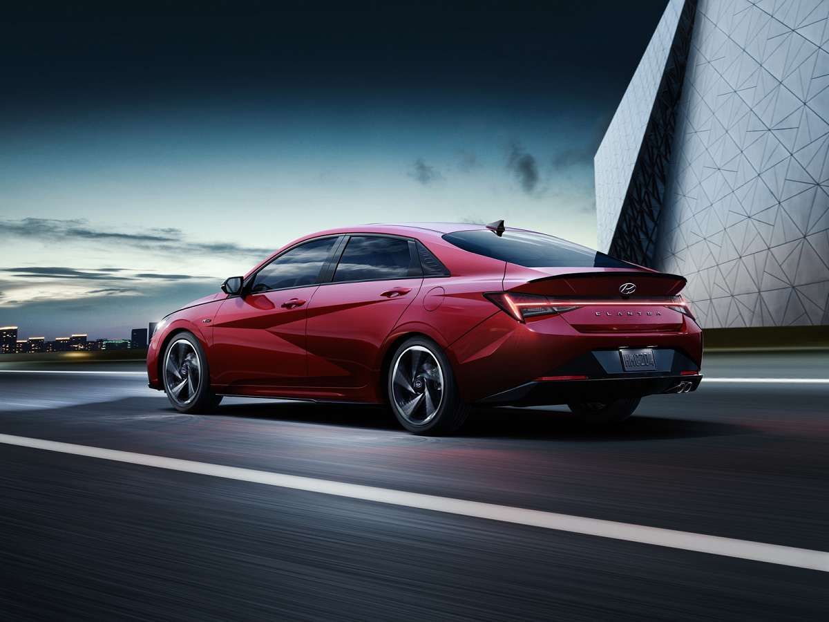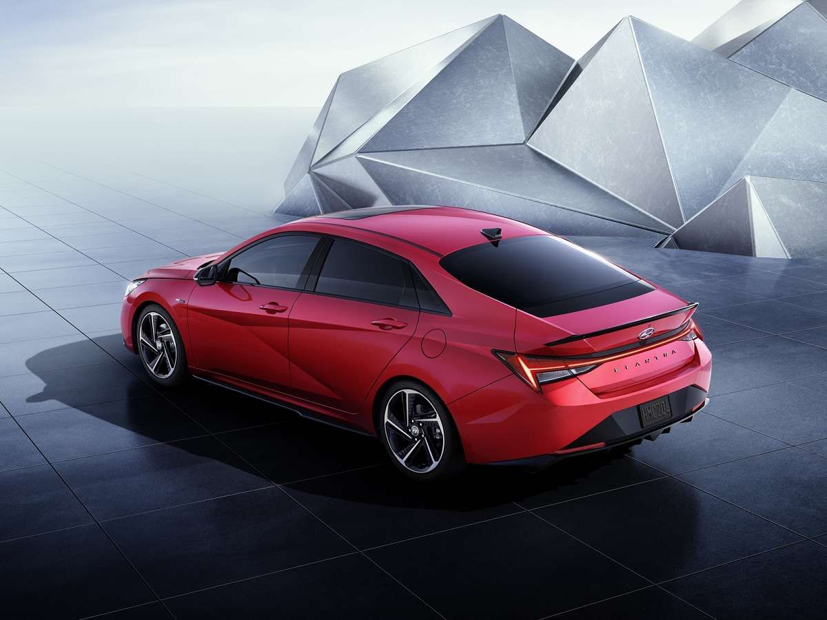 Profil Elantry N Line przechodzi w wyrzeźbiony tył, zaprojektowany w celu poprawy aerodynamiki i zaakcentowania niskiej i szerokiej sylwetki, dodatkowo podkreślonej poprzez poziome linie. Zintegrowany spojler, chromowane końcówki wydechu i tylny dyfuzor N Line również otrzymały sportowy styl.