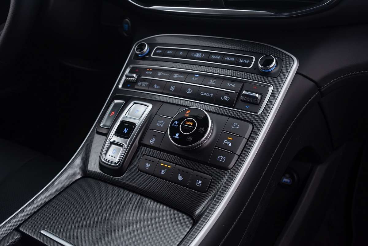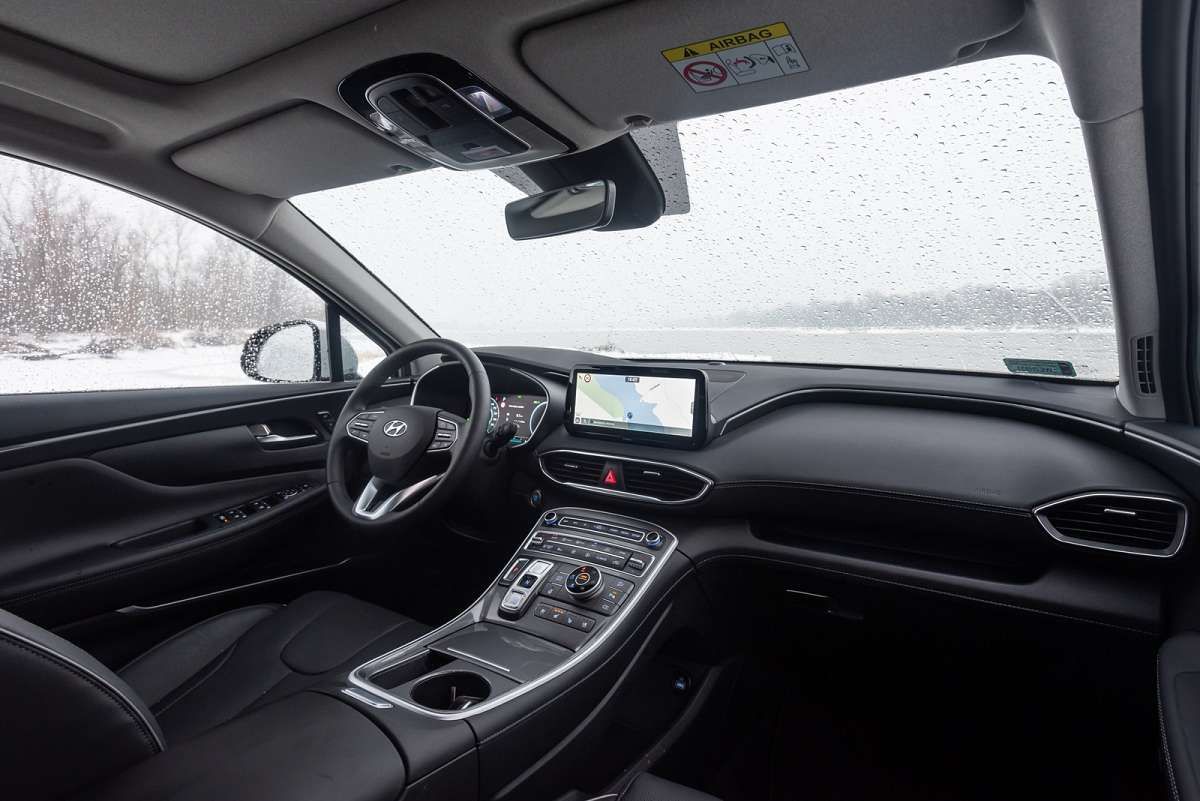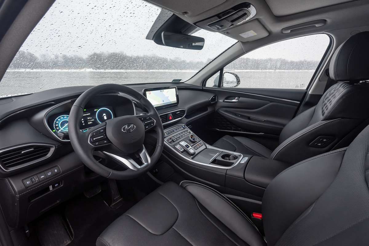Na pokładzie SANTA FE znajdują się również elementy wyposażenia jak: automatyczna klimatyzacja dwustrefowa z funkcją odparowywania szyb, czujnik deszczu, kamera cofania, przednie i tylne czujniki parkowania, felgi aluminiowe 17”, system dostępu bezkluczykowego, podgrzewana kierownica, podgrzewane fotele przednie, system multimedialny z 8” kolorowym ekranem dotykowym, cyfrowym radiem DAB i łącznością Android Auto i Apple Car Play oraz łącznością Bluetooth, komputer pokładowy z 4,2” kolorowym wyświetlaczem, a także reflektory LED.