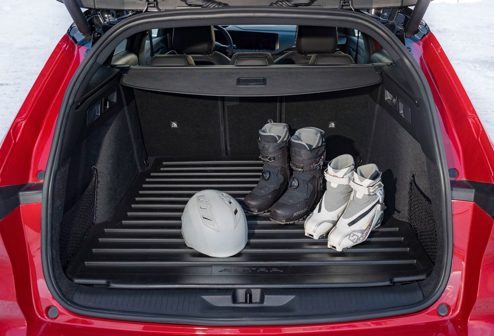 Wewnątrz Astry Sports Tourer Electric jest nawet miejsce na narty dzięki inteligentnemu rozwiązaniu w postaci specjalnego otworu w tylnym środkowym podłokietniku. Niezwykle praktyczna jest również mata bagażnika. Brudne buty narciarskie czy trekkingowe, mokry sprzęt sportowy czy inne przedmioty można zapakować, utrzymując bagażnik w czystości. Dzięki antypoślizgowej powłoce i wytrzymałej krawędzi nie tylko chroni ona przed brudem i wilgocią, ale także zapewnia utrzymanie porządku w bagażniku.