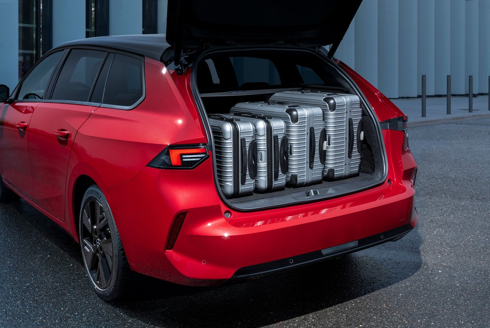 Nowa Astra Sports Tourer Electric to wygodny i praktyczny samochód rodzinny oferujący dużo miejsca na bagaż. To w pełni elektryczne kombi oferuje do 1 553 litrów przestrzeni bagażowej po złożeniu oparć tylnej kanapy. Oznacza to, że zapakować można nie tylko walizki, ale wygodnie i bezpiecznie podróżować może także ukochany czworonożny przyjaciel przewożony w pojemnej skrzyni transportowej. Gdy zaś drugi rząd zajęty jest przez pasażerów, bagażnik nadal może pomieścić do 516 litrów.