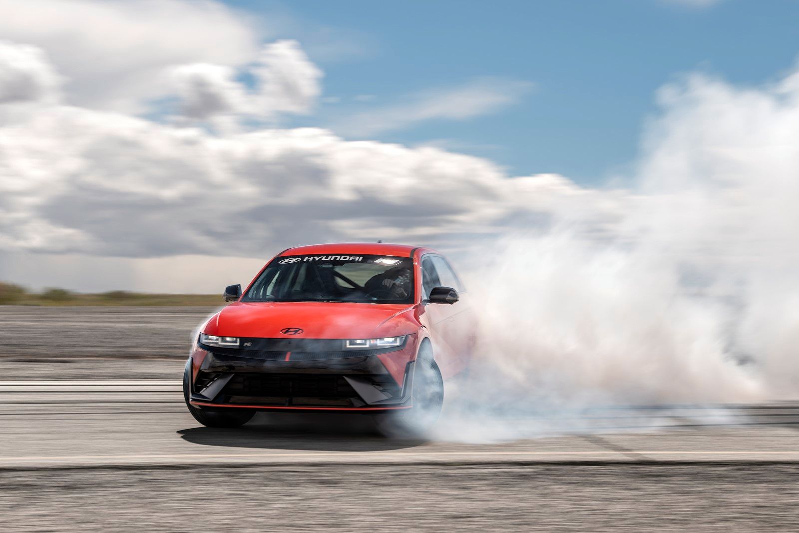 Pod każdym pozostałym względem IONIQ 5 N przygotowywany na Pikes Peak to seryjny IONIQ 5 N. Czerwony lakier auta ze zdjęć zostanie z czasem zastąpiony nowym, przyciągającym wzrok malowaniem Hyundai N.