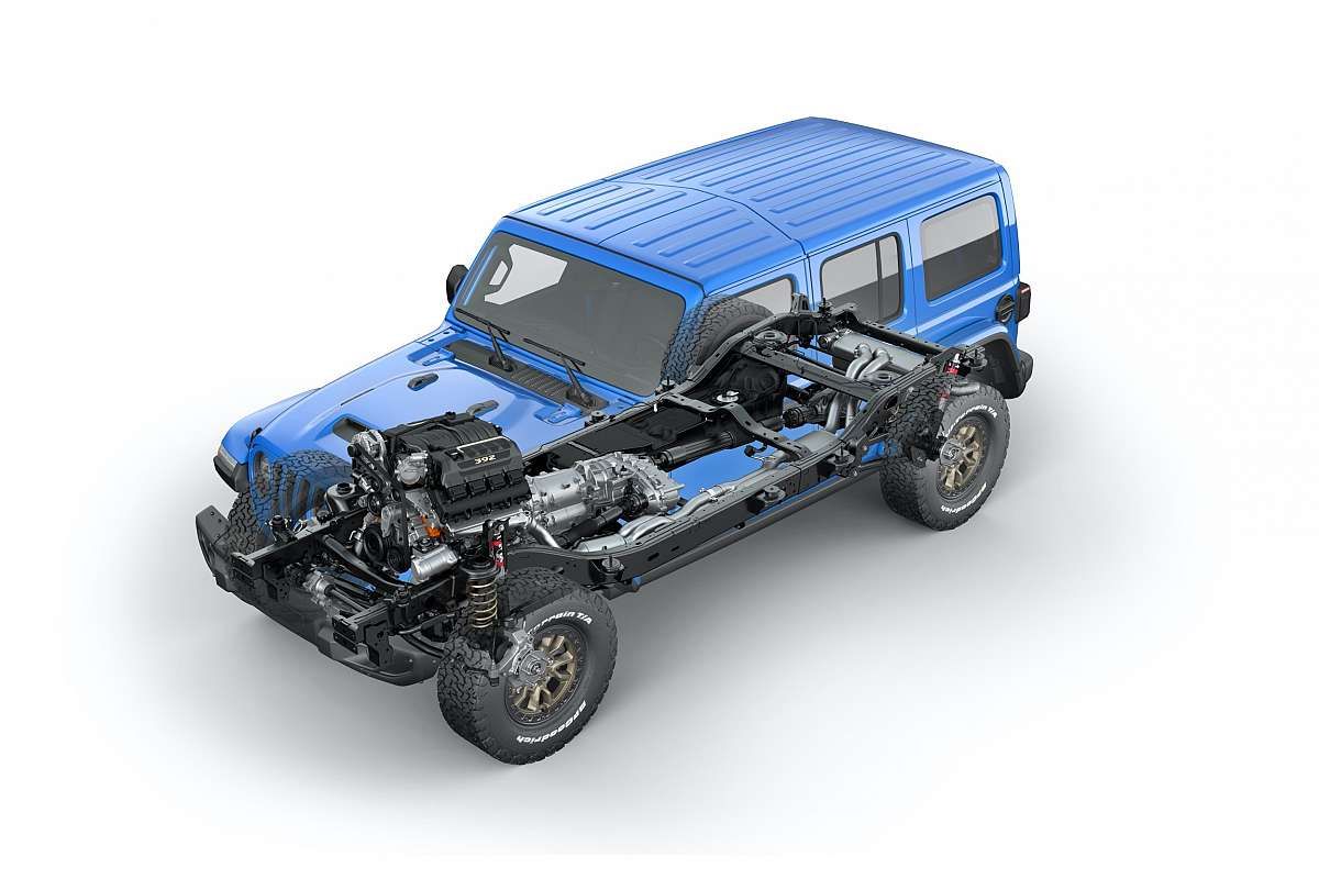 Jeep Wrangler Rubicon 392 zapewnia legendarne osiągi w terenie i nowy poziom osiągów na drodze, niezależnie, czy miażdży swoją prędkością, przyspieszając od 0 do 60 mil/h (0-96 km/h) w 4,5 sekundy, czy wolno pełznie po skałach, stromych wzgórzach czy piaszczystych podjazdach. Po zakupie Wranglera Rubicon 392 Klienci mogą skorzystać z bogatej oferty produktów Mopar, przeznaczonych do Jeepa Wranglera Rubicon 392, w tym Jeep Performance Parts (JPP) i zapewniających najlepsze przygody off-roadowe. Są to: off-roadowe światła LED, wciągarka Rubicon, przedni most Ultimate Dana 44 Advantek z przełożeniem do 5,38, nowe off-roadowe koła z pierścieniem beadlock (odpowiednie do szerszych opon), rurowe drzwi, off-roadowe zderzaki, osłony boczne i wiele więcej.