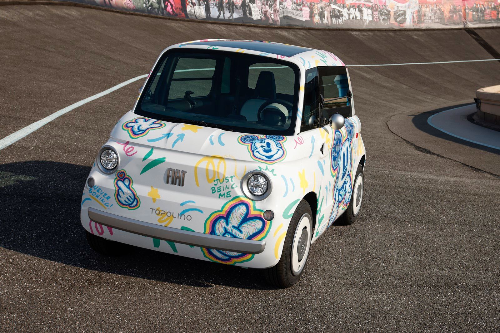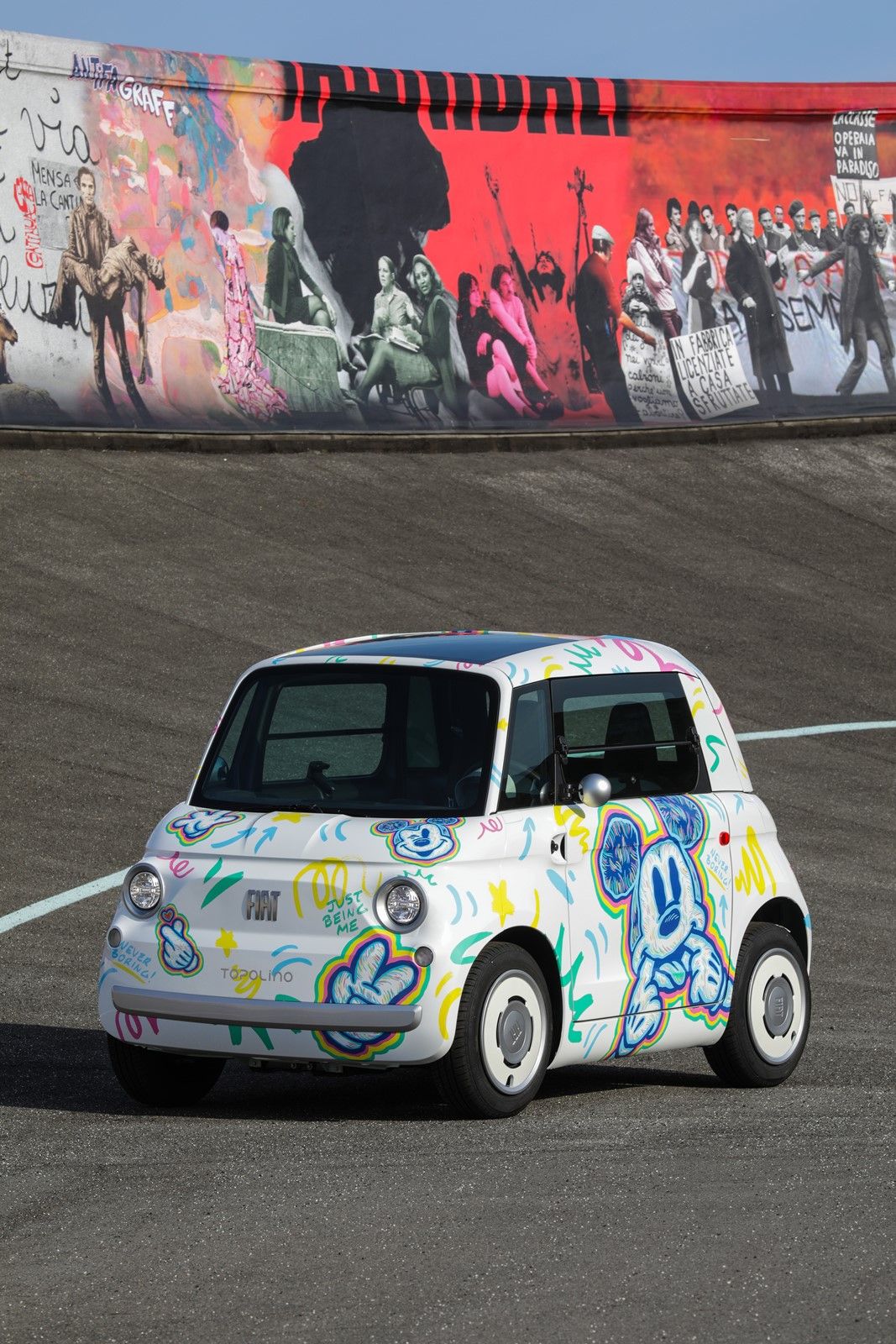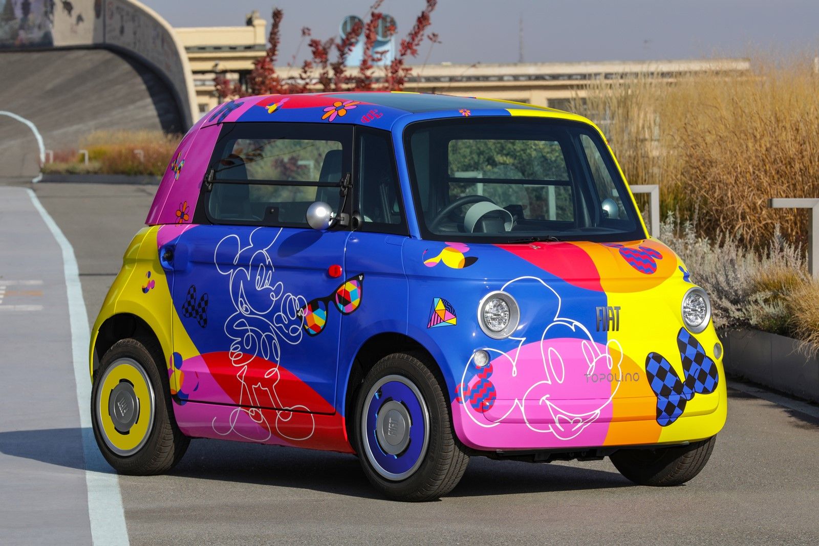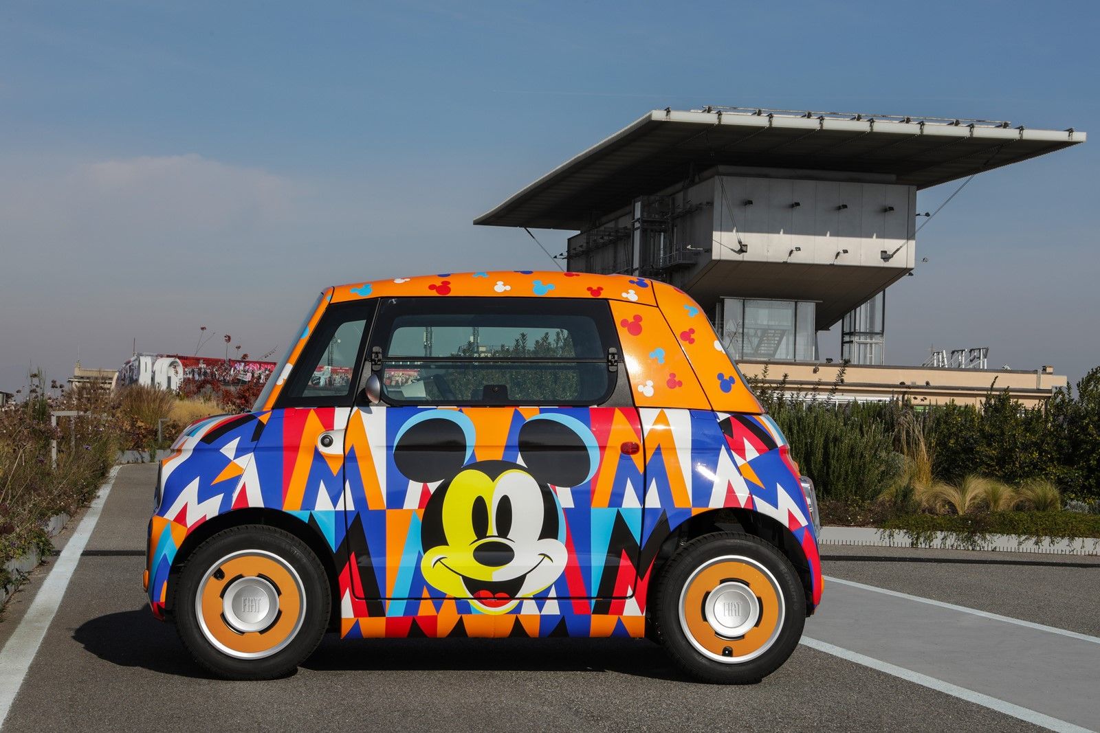 Inspirowany sztuką nowoczesną, Fiat Topolino wykorzystuje fakturę z inicjałami Mickey Mouse (Myszki Miki) jako drugą skórę. Ma to zapewnić powiew pozytywnej energii podczas celebrowania wspólnego patrzenia w przyszłość w jasny, kolorowy i optymistyczny sposób FIAT-a i Disneya - dwóch marek mających status ikon współczesnej sztuki i kultury.