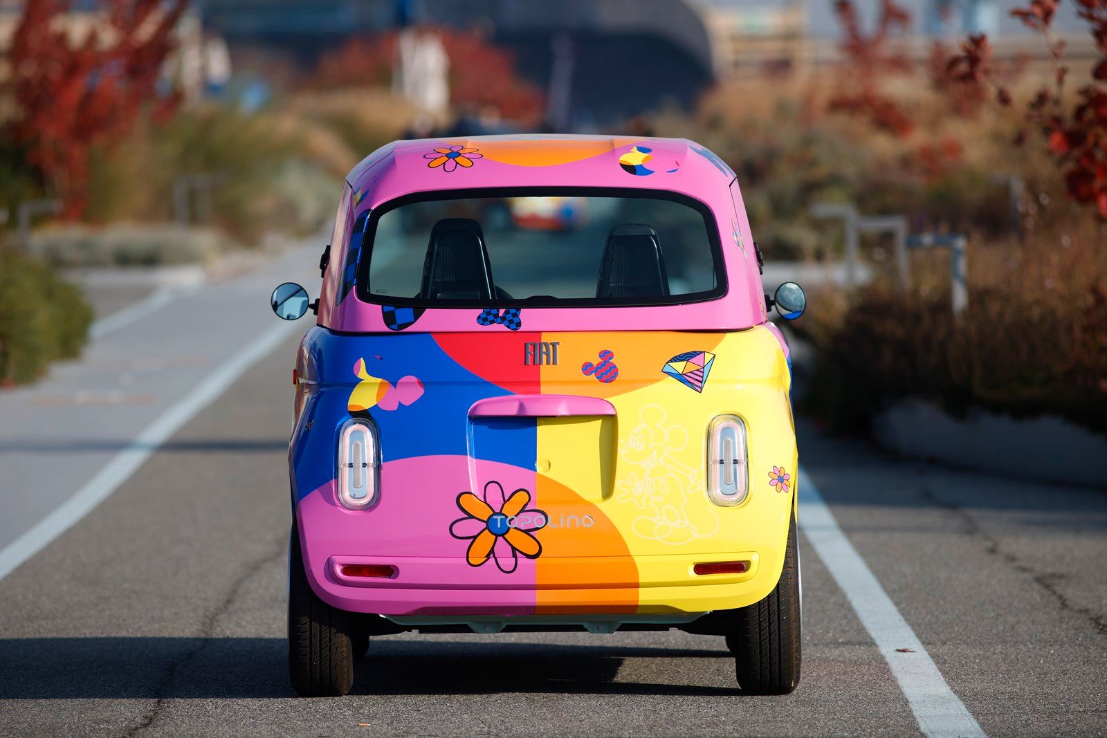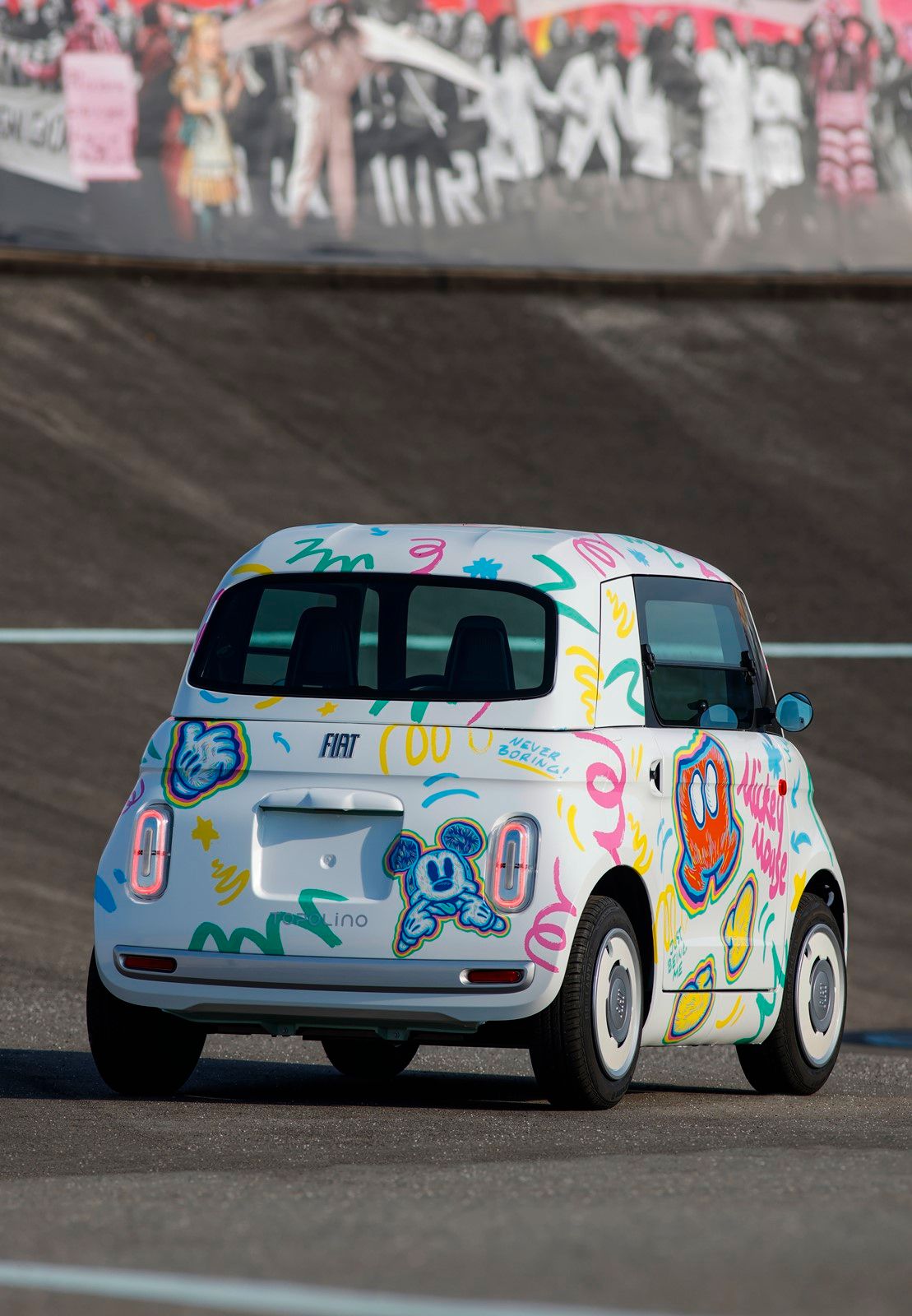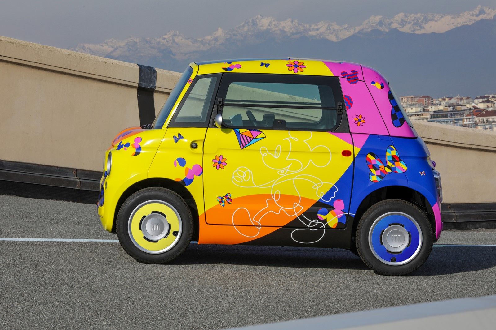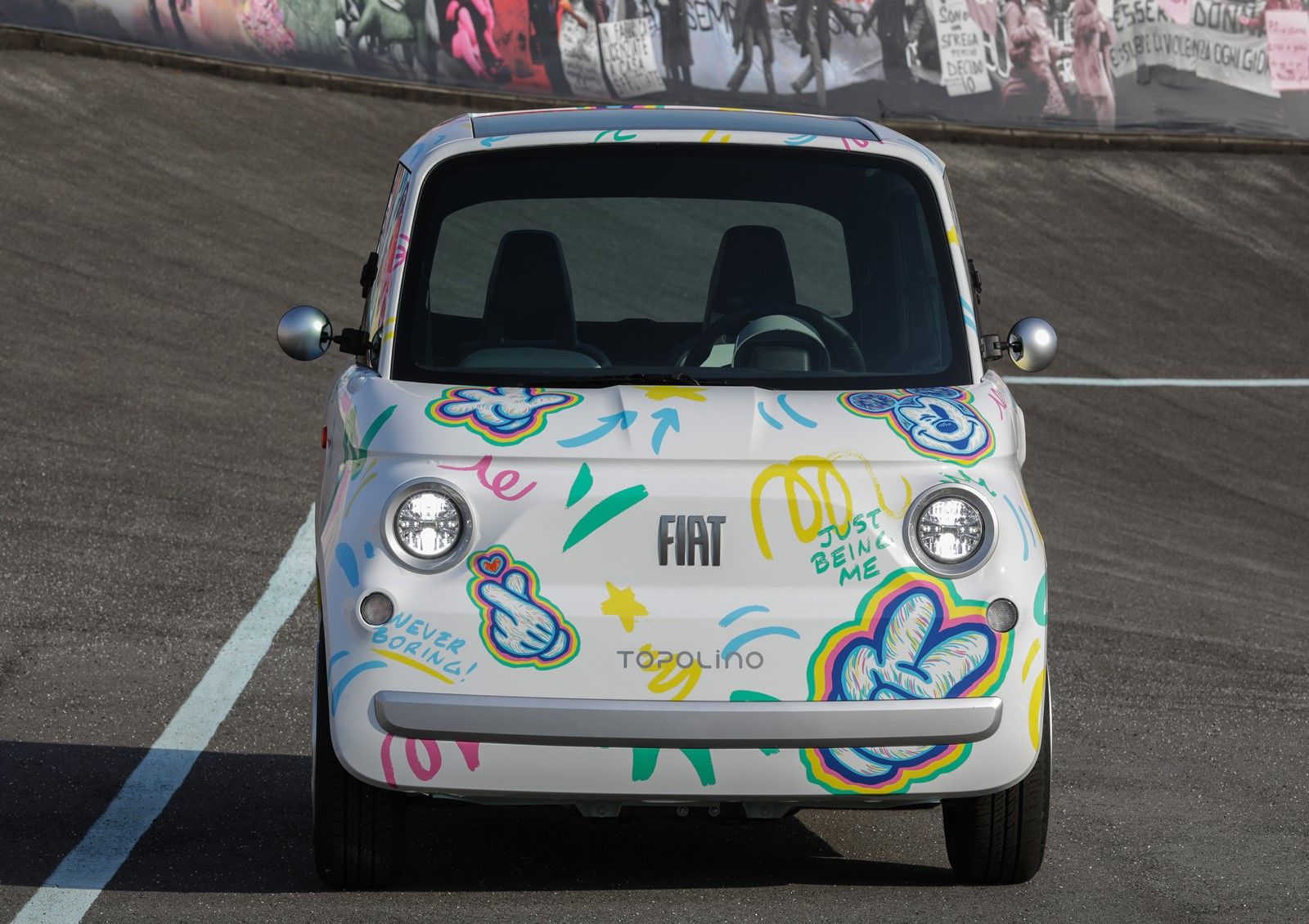 Inspirowany sztuką nowoczesną, Fiat Topolino wykorzystuje fakturę z inicjałami Mickey Mouse (Myszki Miki) jako drugą skórę. Ma to zapewnić powiew pozytywnej energii podczas celebrowania wspólnego patrzenia w przyszłość w jasny, kolorowy i optymistyczny sposób FIAT-a i Disneya - dwóch marek mających status ikon współczesnej sztuki i kultury.