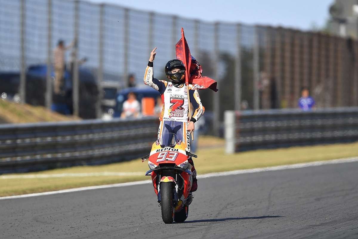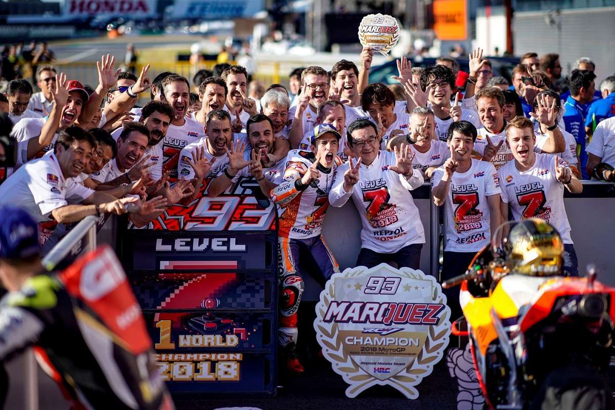 Co prawda tegoroczny sezon w MotoGP Marquez rozpoczął rozmijając się ze zwycięstwem w dwóch pierwszych wyścigach, ale następnie wygrał trzy kolejne. Łącznie w tym roku ma już na swoim koncie siedem wygranych i pięć startów z pole position, dzięki czemu piąty tytuł przypieczętował na trzy rundy przed końcem rywalizacji. Swoim niedzielnym osiągnięciem Hiszpan zrównał się także pod względem ilości zdobytych tytułów w królewskiej klasie z gwiazdą Repsol Hondy z lat 90-tych, Australijczykiem Mickiem Doohanem.