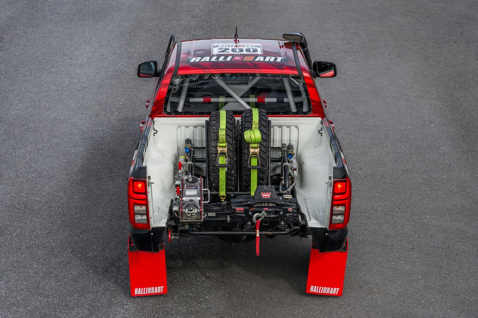 Podstawowe modyfikacje samochodu rajdowego L200/Triton obejmują klatkę bezpieczeństwa i osłonę zderzaka, a także elementy z włókna węglowego, w tym maskę, przednie i tylne drzwi oraz skrzynię ładunkową. Dzięki znacznemu zmniejszeniu masy wewnętrznych komponentów pojazdu, masa nadwozia nowego L200/Tritona jest równa masie poprzednika, mimo większego rozmiaru nadwozia. Nowe L200/Tritony otrzymały przednie i tylne zawieszenie dostosowane do rajdów oraz mechanizm różnicowy o ograniczonym poślizgu LSD zapewniający sportowe i stabilne prowadzenie, a jednocześnie pełną kontrolę. Zastosowanie lekkich felg aluminiowych i wąskich opon terenowych poprawiło prowadzenie na trudnych nawierzchniach, takich jak błoto, w porównaniu z zeszłorocznym samochodem rajdowym. Wyczynowe podwozie zostało wyposażone w przednie i tylne podwójne amortyzatory z tłumieniem dobicia.