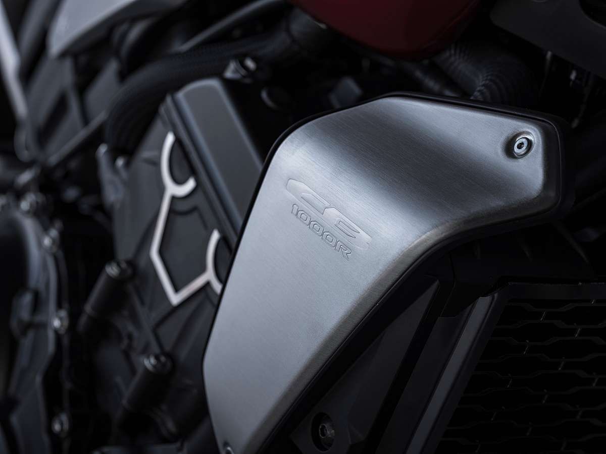 Estetyka opracowanego przez Hondę stylu "Neo Sports Cafe" powstała nie tylko z zamiłowania do przeszłości, ale i z myślą o przyszłości, dając wiele interpretacji tego motywu. Taki projekt nie może stanąć w miejscu, dlatego model CB1000R na rok 2021 przyjmuje imponującą ideę stylistyczną z roku 2018 jako trampolinę, która pozwala odbić się w przyszłość. Charakterystyczny styl Neo Sports Cafe rozpozna każdy, jednak w tym modelu zaserwowano jego potężną dawkę, a sylwetka jeszcze bardziej zdecydowanie wyskakuje do przodu i przyciąga wzrok po przekątnej w dół, na wspaniałe, czarne wykończenie silnika. Nowe 7-ramienne, aluminiowe obręcze kół podkreślają misterne wykończenie motocykla. Na całej długości pojazdu utrzymano harmonię linii i detali. Natychmiast rozpoznawalny okrągły reflektor, umieszczony w łezkowej obudowie między goleniami widelca, odchyla się do tyłu. Osłony chłodnicy z polerowanego aluminium są znacznie mniejsze i ustawione pod kątem w stosunku do osi motocykla, co konsekwentnie wykorzystano w liniach osłony airboxu. Całkowicie przeprojektowana aluminiowa rama pomocnicza jest teraz wykończona w kolorze aluminium (nie czarnym), podkreślając surowy minimalizm tylnej części motocykla. Dodatkowym estetycznym szczegółem jest mniejsze ramię mocowania tablicy rejestracyjnej. Na etapie dopracowywania nowego wyglądu CB1000R, który czułemu na motocyklową urodę obserwatorowi może zawrócić w głowie, pamiętano też o praktycznych drobiazgach, dzięki czemu ułatwiono codzienne korzystanie z motocykla. Zestaw wskaźników umieszczono w 5-calowym, pełnokolorowym, dobrze widocznym ekranie TFT, który oferuje cztery sposoby wyświetlania prędkości jazdy i obrotów silnika – w zależności od preferencji kierowcy – a także wskaźnik poziomu paliwa i jego zużycia, wskaźnik trybu jazdy, informacje dot. parametrów silnika oraz wskaźnik sugerowanej zmiany biegu na wyższy. Zmiana wyświetlanych danych odbywa się za pomocą przycisków umieszczonych po lewej stronie kierownicy. W interfejs kierowcy wbudowano również nowy system sterowania głosowego Honda Smartphone Voice Control (HSVC), który w czasie jazdy łączy kierowcę ze smartfonem i umożliwia głosowe zarządzanie odbieraniem rozmów telefonicznych, pocztą elektroniczną, muzyką i nawigacją. Kierowcy potrzebny jest zestaw słuchawkowy montowany w kasku, z kolei smartfon łączy się z pojazdem przez łącze Bluetooth. Po lewej stronie kierownicy znajdują się też przyciski obsługi systemu. Pod siedzeniem ulokowano gniazdo USB, które ułatwia ładowanie urządzenia mobilnego. Tylne kierunkowskazy CB1000R posiadają funkcję sygnału awaryjnego hamowania (ESS). Podczas nagłego hamowania, światła awaryjne migają, aby ostrzec innych użytkowników drogi o gwałtownym spadku prędkości. Światła awaryjne są wyłączane z pomocą systemu, który porównuje różnicę prędkości kół przedniego i tylnego i oblicza, kiedy należy je wyłączyć w zależności od sytuacji.