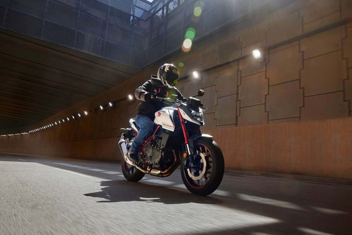 Premiera zupełnie nowego silnika Hondy to zawsze wyjątkowy moment. Zaprezentowanie go w nowym Hornecie świadczy o randze, jaką Honda nadaje powrotowi legendarnej nazwy modelu do oferty. Inżynierowie Hondy stworzyli zupełnie nową, rzędową, dwucylindrową jednostkę napędową, która zapewnia Hornetowi doskonałe osiągi. Silnik został zaprojektowany z przeznaczeniem dla każdej grupy kierowców, którzy chcą wykorzystać zarówno maksymalną moc, jak i walory użytkowe w niskim i średnim zakresie obrotów – jest idealny do motocykla dla mniej doświadczonych, daje jednak również ogromną przyjemność z codziennej jazdy po mieście. Przy pojemności 755 cm3, z 8-zaworową głowicą cylindra Unicam, rozwija moc 92 KM przy 9500 obr/min i moment obrotowy 75 Nm przy 7250 obr/min. Średnica cylindra i skok tłoka wynoszą 87 mm x 63,5 mm, stopień sprężania, to 11,0:1. Kompaktowa i lekka głowica Unicam (konfiguracja używana w gotowym do zawodów MX CRF450R) obsługuje zawory wlotowe o średnicy 35,5 mm za pomocą krzywki i 29-milimetrowe zawory wylotowe za pomocą popychaczy. Skoki zaworów wynoszą 9,3 mm po stronie wlotowej i 8,2 mm po stronie wydechu. Chronione patentem kanały przepływu Vortex Flow zapewniają bardziej równomierną dystrybucję strumienia powietrza z bocznych nawiewów do airboxu, który następnie zasila wloty downdraft i przepustnicę o średnicy 46 mm. Wał korbowy z wykorbieniami przesuniętymi o 270° i nierównomierne odstępy między momentami zapłonu, powodują charakterystyczny pulsacyjny odgłos silnika. Aby silnik był jak najbardziej zwarty, główne koło zębate pełni podwójną rolę i obraca również wałek wyrównoważający (nie użyto oddzielnego koła zębatego, napędzającego wałek wyrównoważający). Pompa wodna jest ukryta pod lewą pokrywą silnika i nie ma potrzeby stosowania chłodzonej cieczą chłodnicy oleju. W cylindrach zastosowano również powłokę Nikasil (nikiel-węglik-krzem), znaną już z modeli CBR1000RR-R Fireblade i CRF450R. Sprzęgło antyhoppingowe – z ukośnie ułożonymi segmentami tarcz – zmniejsza wymaganą siłę nacisku na dźwignię sprzęgła, ułatwia zmianę biegów na wyższy i zapobiega podskokom tylnego koła przy silnym hamowaniu i szybkich redukcjach przełożeń. Spalanie 4,35 l/100km (zgodnie z cyklem pomiarowym WMTC) daje zasięg ponad 340 km na jednym zbiorniku, który mieści 15,2 litra paliwa. Dostępna będzie również wersja o mocy 35 kW dla kierowców z kategorią prawa jazdy A2.