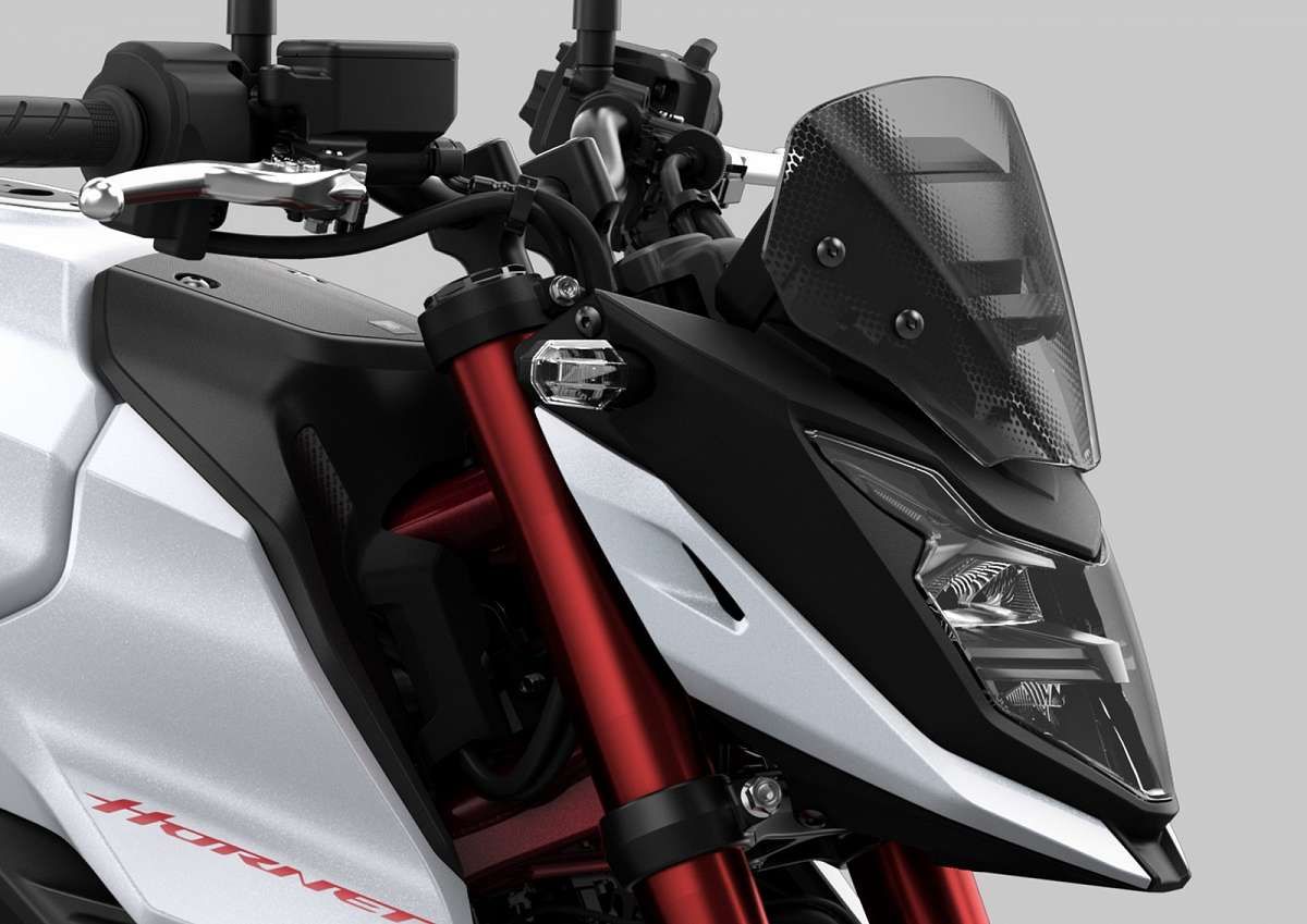 Styliści biura badawczo-rozwojowego Hondy w Rzymie spojrzeli z szacunkiem w przeszłość, na pierwszego „szerszenia” i zabrali się do pracy nad nowym, współczesnym wyrazem technicznego piękna, które odzwierciedlili w sylwetce, liniach i formach, zachowujących zwarte, eleganckie proporcje. Znakiem rozpoznawczym Horneta jest zbiornik paliwa, nawiązujący formą do kształtu skrzydła szerszenia. W każdym elemencie – od drapieżnie pochylonego „nosa” z przodu, po ostry jak brzytwa, ograniczony w formie tył – projektanci wprowadzili stylistyczne oznaki napięcia i agresji, które podkreślają sportowe ambicje Horneta. Walory użytkowe, które docenią kierowcy różnych grup, stanowią również nieodłączny element projektu. Wysokość siedziska wynosi 795 mm, pozycja kierującego jest wyprostowana, z lekko cofniętymi podnóżkami dla naturalnego balansu. Zastosowano szerszą kierownicę, wymagającą mniejszej siły ze strony kierowcy. Zestaw wskaźników umieszczonych w 5-calowym, pełnokolorowym, dobrze widocznym ekranie TFT, oferuje cztery sposoby wyświetlania prędkości jazdy i obrotów silnika – tradycyjny lub w formie słupkowej, w zależności od preferencji kierowcy – a także wskaźnik poziomu paliwa i jego zużycia, wskaźnik trybu jazdy, wyświetlanie parametrów silnika, wybranego biegu oraz ustawiany wskaźnik sugerowanej zmiany biegu na wyższy. Zmiana wyświetlanych danych odbywa się za pomocą ekranu, jak i przycisków umieszczonych po lewej stronie kierownicy. W interfejsie kierowcy znajduje się również system sterowania głosowego Honda Smartphone Voice Control, który w czasie jazdy łączy kierowcę ze smartfonem z Androidem i umożliwia głosowe zarządzanie odbieraniem rozmów telefonicznych, informacji, muzyką i nawigacją. Po raz pierwszy niektóre funkcje systemu HSVC będą dostępne również na smartfonach z iOS. Do obsługi kierowcy potrzebny jest zestaw słuchawkowy montowany w kasku, z kolei smartfon łączy się z pojazdem przez łącze Bluetooth. Zarządzanie sterowaniem głosowym jest możliwe również za pomocą przycisków po lewej stronie kierownicy. Aby uprościć i zminiaturyzować cały układ elektryczny, w modelu Hornet wykorzystano magistralę CAN (Controller Area Network) wraz z modułem kontroli nadwozia (BCU). BCU znajduje się pod siedzeniem kierowcy i przetwarza sygnały sterujące – z modulatora ABS, ekranu TFT i przełączników, które nie są kontrolowane przez ECU poprzez magistralę CAN. Tylne kierunkowskazy mają funkcję sygnału awaryjnego hamowania (ESS). W wypadku zarejestrowania ujemnego przyspieszenia o wartości 6,0 m/s2 przy minimalnej prędkości 56 km/h i przy włączonym jednym z hamulców, światła awaryjne zaczynają migać, ostrzegając innych użytkowników drogi o intensywnym hamowaniu. Przy tej samej prędkości graniczne opóźnienie zadziałania jest zmniejszane, jeśli został aktywowany system ABS – wystarczy wtedy, że opóźnienie przekroczy 2,5 m/s2. Światła awaryjne – po nagłym hamowaniu – są wyłączane bez korzystania z prostego timera, zamiast tego system porównuje różnicę prędkości kół przedniego oraz tylnego i oblicza kiedy należy wyłączyć światła awaryjne w zależności od sytuacji.