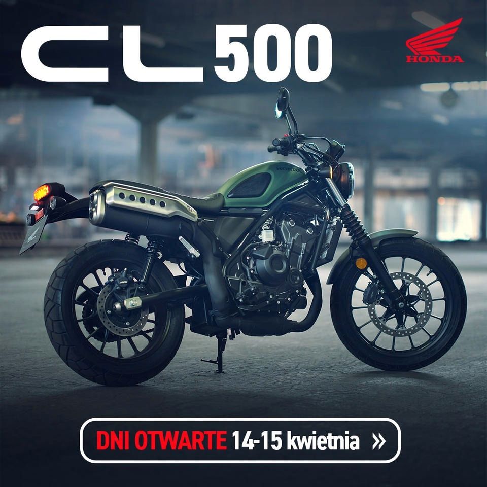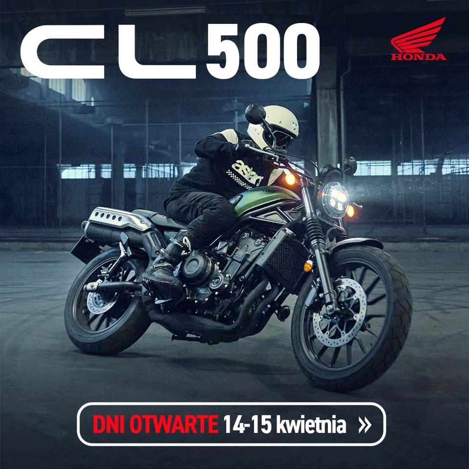 Honda zaprasza do autoryzowanych dealerów motocyklowych na Dni Otwarte, które rozpoczną się w najbliższy piątek, 14 kwietnia. Wydarzenie związane jest z wprowadzeniem na rynek nowego modelu – CL500, motocykla z nutą retro, nawiązującego do modeli CL z lat 60. i 70. Stylistyka maszyn z tej serii, z wysoko umieszczonymi rurami wydechowymi, stała się ikoną dla wielu motocyklistów XXI wieku.