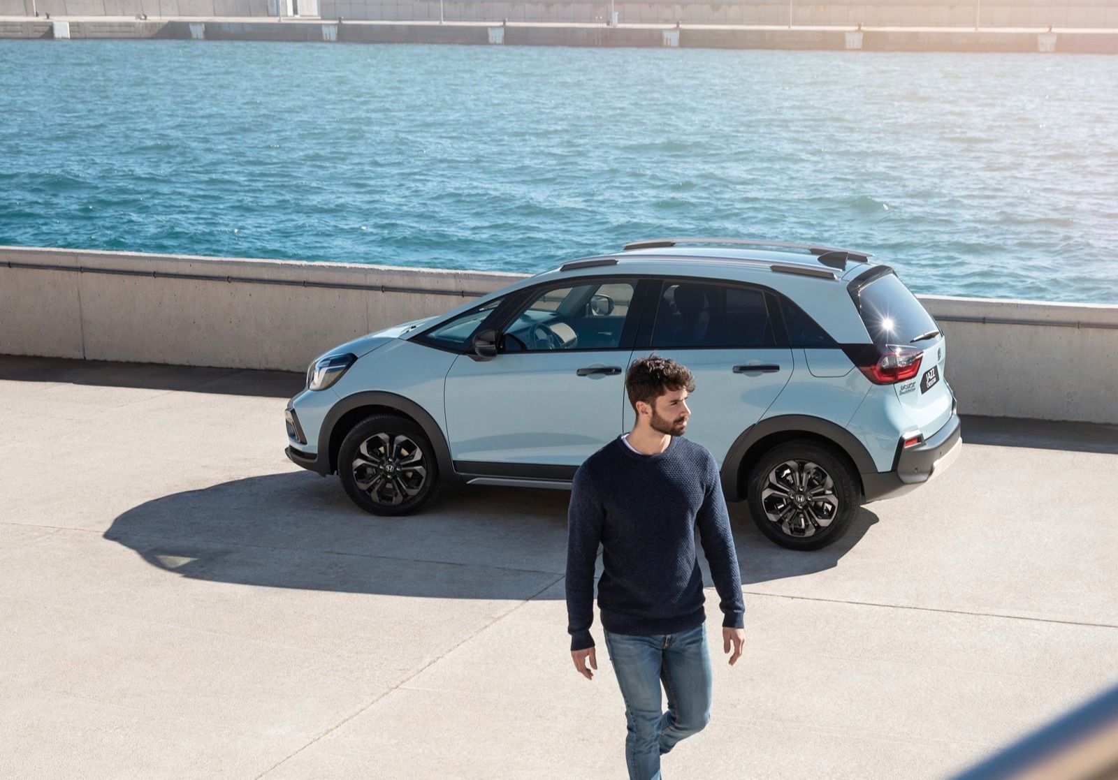 Odświeżony Jazz Crosstar e:HEV doczekał się zmian w wyglądzie zewnętrznym, które podkreślają jego śmielszy, surowy styl. Bardziej wyrazista osłona wlotu powietrza o strukturze plastra miodu uzupełnia zmodyfikowane zderzaki, wzbogacone o srebrne panele imitujące osłony podwozia oraz korespondujące z nimi nowe listwy boczne. Dopełnieniem zmian jest nowe wykończenie felg aluminiowych oraz wprowadzenie nowego niebieskiego lakieru nadwozia: Fjord Mist.