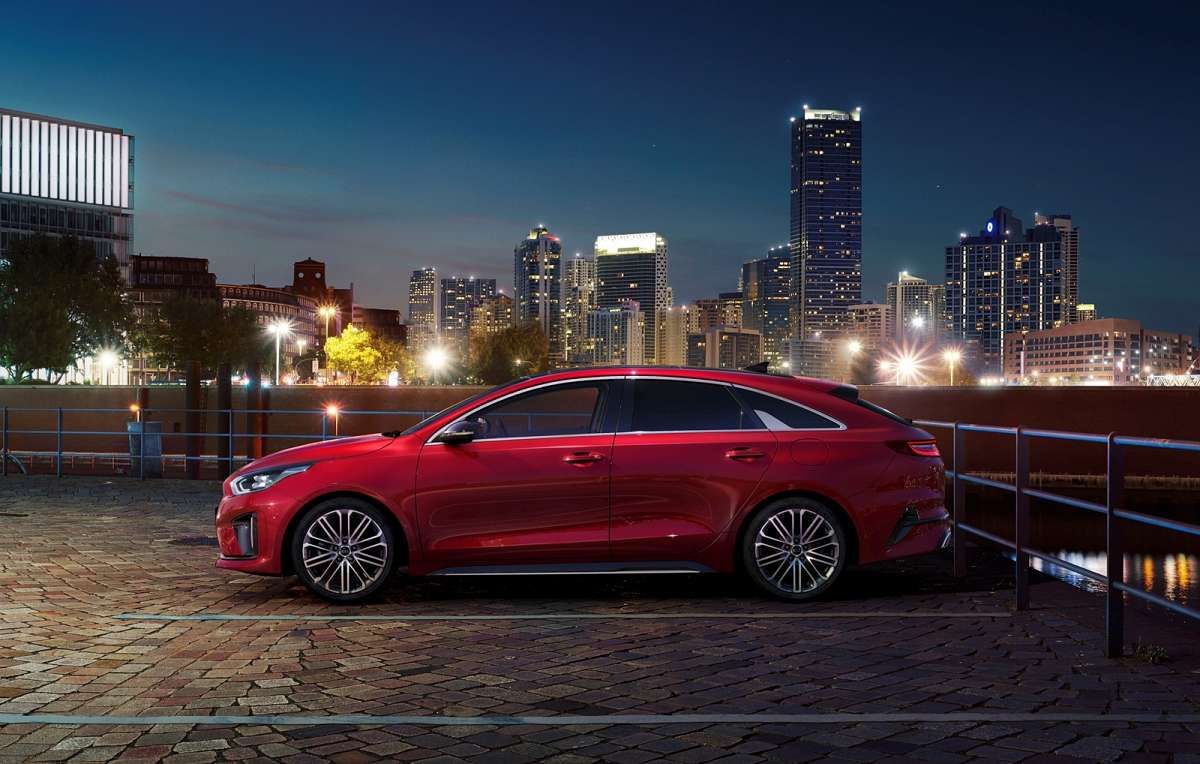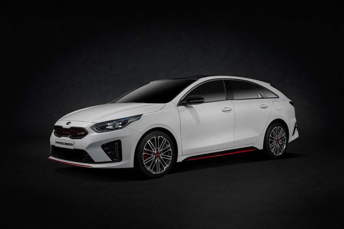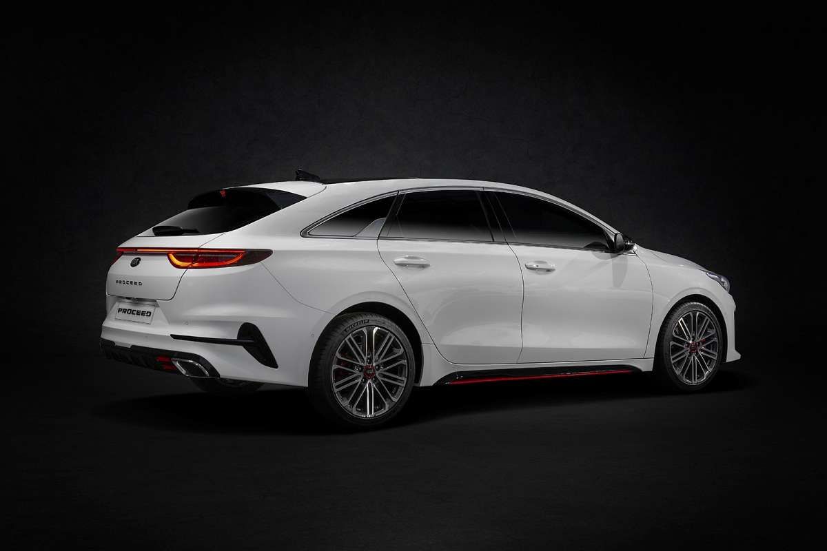 Z profilu ProCeed nawiązuje do modelu studyjnego Kia Proceed Concept zaprezentowanego w 2017 roku. Ma niemal identyczną linię dachu, która bardzo płynnie i elegancko przechodzi w tylne błotniki. Wyraźne przetłoczenia karoserii przebiegają przez całą długość samochodu, ciągnąc się od reflektorów aż do pokrywy bagażnika, aby wizualnie wydłużyć nadwozie jeszcze bardziej. Mocno pochylona tylna szyba wyróżnia ProCeeda nie tylko na tle rodzeństwa, ale wszystkich modeli w klasie samochodów kompaktowych. Tylna szyba w Ceedzie kombi jest odchylona od pionu pod kątem 50,9°, w ProCeedzie ma nachylenie typowe dla samochodów w stylu coupé i jest odchylona od pionu pod kątem 64,2°.