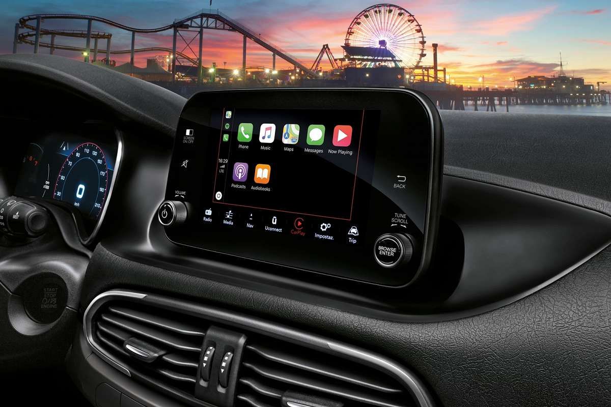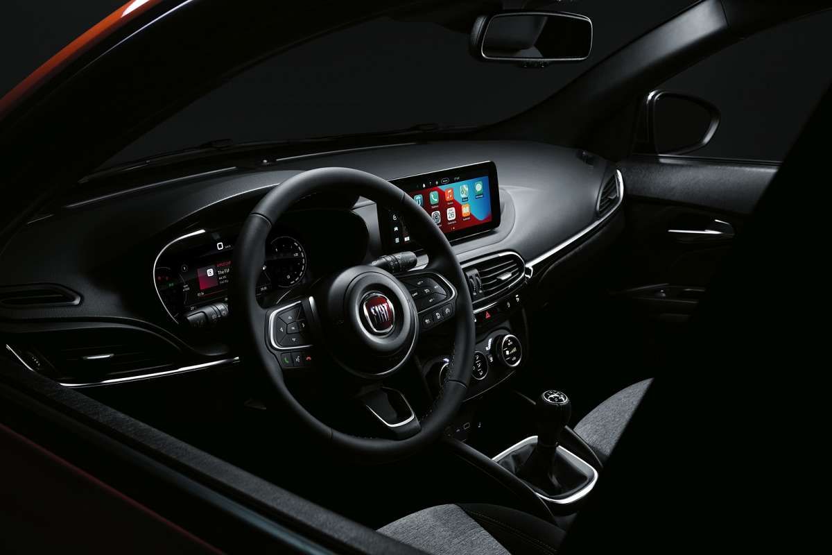 Wnętrze samochodu jest również całkowicie nowe. Fotele zdobią tkaniny o ekskluzywnym designie. W pełni konfigurowalny, 7-calowy cyfrowy wyświetlacz TFT zastępuje konwencjonalny, analogowy zestaw wskaźników. Jest to zdecydowanie najnowocześniejszy i najbardziej zaawansowany technologicznie system, dzięki czemu można kontrolować stan samochodu, multimedia i telefon. Samochód wyposażony jest w całkowicie nowe radio UConnect 5 z 10,25” ekranem dotykowym, po raz pierwszy dostępny w Grupie FCA w nowym Fiacie 500, a teraz również w nowym Tipo. Nawet kierownica, teraz jeszcze bardziej elegancka i sportowa, znalazła się w centrum uwagi projektantów Fiata. Jest ona teraz bardziej kompaktowa i nieco zmniejszona, by zapewnić lepszą ergonomię i pełną widoczność 7-calowego wyświetlacza TFT. Zwrócono również uwagę na centralny panel sterowania, w którym zmieniono układ sterowania klimatyzacją i dodano nowe chromowane i czarne elementy wykończeniowe.