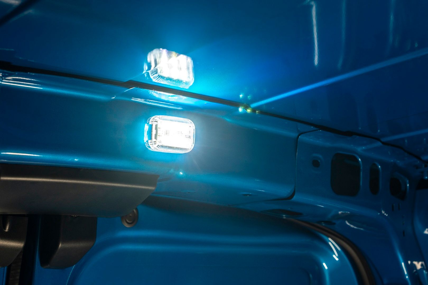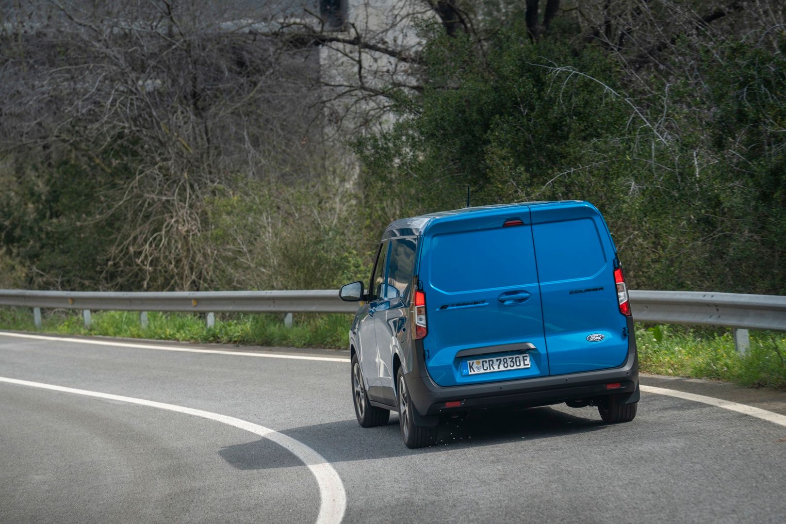 Nowa konstrukcja nadwozia elektrycznego E-Transita Couriera oznacza poprawę wszystkich parametrów dotyczących ładowności w porównaniu z poprzednią generacją Transita Couriera. Udoskonalone tylne zawieszenie zwiększa szerokość ładunkową między nadkolami do 1220 mm, dzięki czemu kompaktowy furgon może po raz pierwszy przewozić dwie europalety. Całkowita objętość przestrzeni ładunkowej wynosi teraz 2,9 m3, czyli o 25% więcej, niż w poprzednim modelu. Możliwości furgonu dodatkowo zwiększa nowa funkcja grodzi przelotowej, która umożliwia przewożenie długich przedmiotów, takich jak deski lub rury o długości ponad 2 600 mm. Dopuszczalna ładowność furgonu z napędem w pełni elektrycznym wynosi 700 kg,2 a maksymalna masa holowanej przyczepy, to 750 kg.