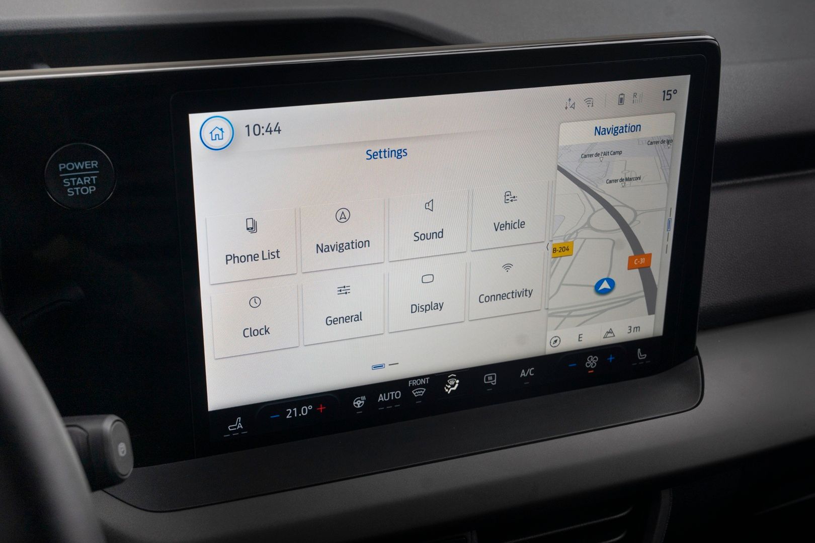 Cyfrowy zestaw wskaźników «digiboard» zawiera 12-calowy ekran główny i 12-calowy środkowy ekran dotykowy z najnowszym systemem Ford SYNC 4. Oparta na subskrypcji, skomunikowana z siecią nawigacja Connected Navigation może podnieść efektywność pracy i zmniejszyć wysiłek kierowcy, dzięki aktualnym informacjom o ruchu drogowym, parkowaniu, opłatach i lokalnych zagrożeniach. Kompatybilność bezprzewodowa z urządzeniami mobilnymi poprzez Android Auto i Apple CarPlay jest standardem.