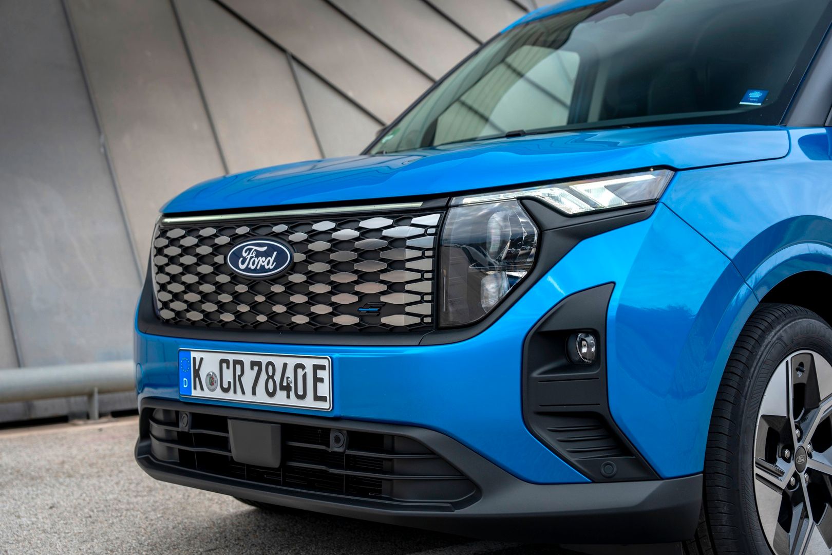 E-Transit Courier wyróżnia się na tle innych pojazdów dzięki odważnemu, wyrazistemu wyglądowi nadwozia, efektownej chromowanej kratce przedniego wlotu powietrza z „diamentowym” wzorem oraz listwie oświetleniowej LED, biegnącej w poprzek całego przodu, prezentującej styl typowy dla zaawansowanych modeli elektrycznych. Przestronne i praktyczne wnętrze zaprojektowano kierując się potrzebami użytkowników kompaktowych furgonetek. Nowy model elektryczny oferuje bardzo bogate wyposażenie standardowe, w tym wyróżniające go elementy wyposażenia wnętrza, jak kierownica o spłaszczonym dolnym i górnym łuku wieńca („squircle”), która poprawia wygodę wsiadania i widoczność z miejsca kierowcy, a także dźwignia zmiany biegów montowana na kolumnie, czy zapłon uruchamiany przyciskiem i elektroniczny hamulec parkingowy, dzięki czemu właściciel zyskuje więcej użytecznej przestrzeni w kabinie.
