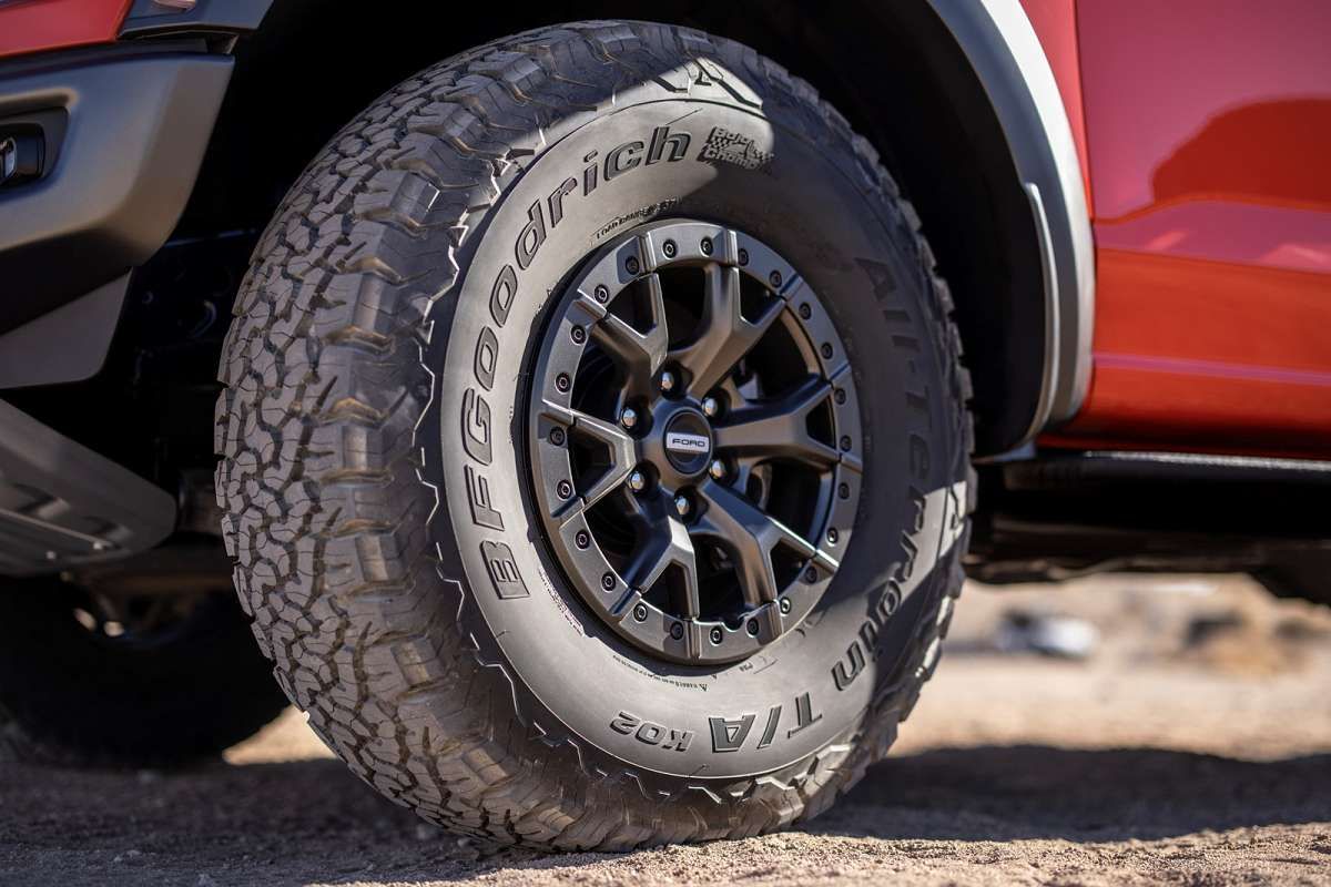 Po raz pierwszy Raptor jest dostępny z 35- lub 37-calowymi oponami – największymi, jakie fabrycznie montuje się w segmencie lekkich, pełnowymiarowych pickupów. Są to specjalnie zaprojektowane opony BFGoodrich All-Terrain T/A KO2, zapewniające maksymalną trakcję i sterowność. Raptor na 35-calowych oponach pokonuje 30-centymetrowe przeszkody, z kątem natarcia 31 stopni, maksymalnym kątem zejścia 23,9 stopnia i z kątem rampowym 22,7 stopnia. Raptor z 37-calowymi oponami dysponuje prześwitem 33 centymetry, kątem natarcia 33,1 stopnia, maksymalnym kątem zejścia 24,9 stopnia oraz kątem rampowym 24,4 stopnia. Zarówno zwolennicy pustynnych rajdów, jak i amatorzy samochodowej wspinaczki skalnej docenią imponujący skok kół na 35-calowych oponach, wynoszący 356 mm z przodu i 381 mm z tyłu – o 25% więcej niż w Raptorze pierwszej generacji.